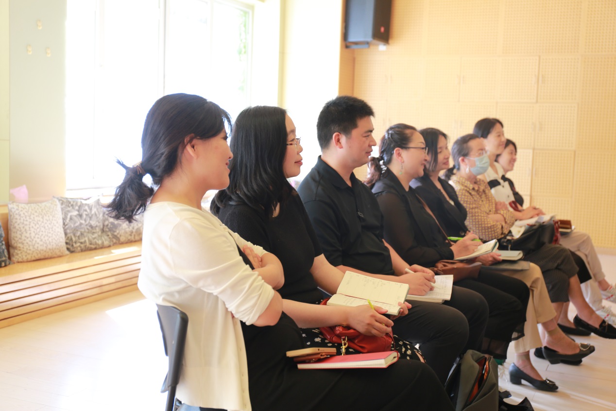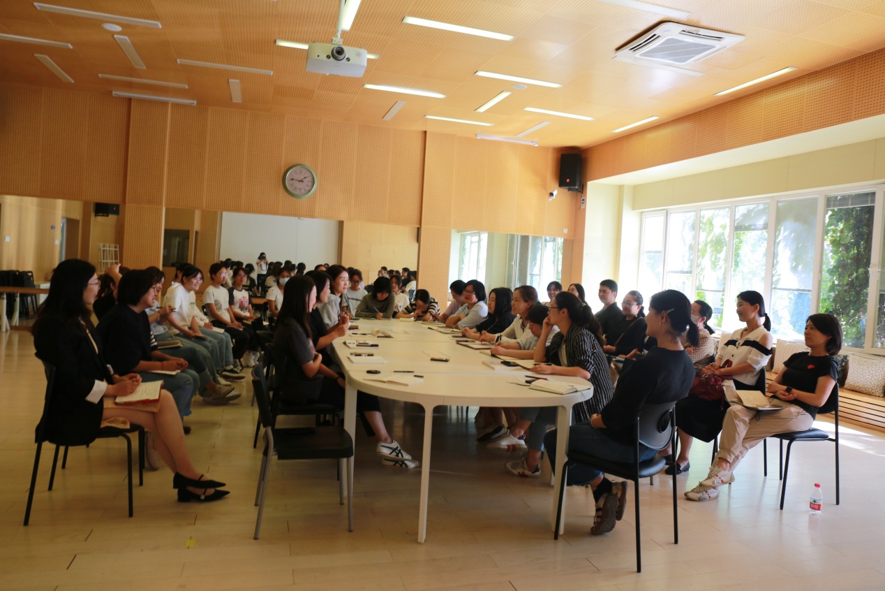 幼兒園集體教研活動(dòng)由中華女子學(xué)院附屬實(shí)驗(yàn)幼兒園張芬老師主持,大、中、小班全體主班教師和副班教師參加。首先,教師們分享了個(gè)人本周教育體悟的關(guān)鍵詞,如“緩慢、慢下來(lái)感受、當(dāng)下最好的方式、故事、喜悅、成長(zhǎng)、充實(shí)”等。接下來(lái),教師們分別圍繞本周主題教學(xué)活動(dòng)中的發(fā)現(xiàn)以及組織召開(kāi)家長(zhǎng)會(huì)的感想進(jìn)行了深度交流,內(nèi)容廣博又很具有適切性。圍繞著“節(jié)奏、計(jì)劃、本領(lǐng)、值日生、朋友、夸夸會(huì)、入園適應(yīng)、家園溝通與協(xié)同共育”等主題,教師們的分享討論中充滿了豐富的教育細(xì)節(jié)和鮮活敘事,閃耀著寶石般璀璨的光輝。之后,教師們分享了本周的一些奇妙生命體驗(yàn),并對(duì)接下來(lái)的教育活動(dòng)安排中可能會(huì)出現(xiàn)的問(wèn)題和困境進(jìn)行了集中研討,展現(xiàn)了學(xué)習(xí)共同體群策群力的功能和魅力。最后,兒童發(fā)展與教育學(xué)院陳輝院長(zhǎng)對(duì)附屬園的大力支持表示了感謝,對(duì)教師們的優(yōu)秀理念、教育機(jī)制、辛苦付出和精彩分享給予了高度評(píng)價(jià),各位研究生導(dǎo)師們也分別就此次觀摩發(fā)表了評(píng)議、心得和感想,均表示受益匪淺。