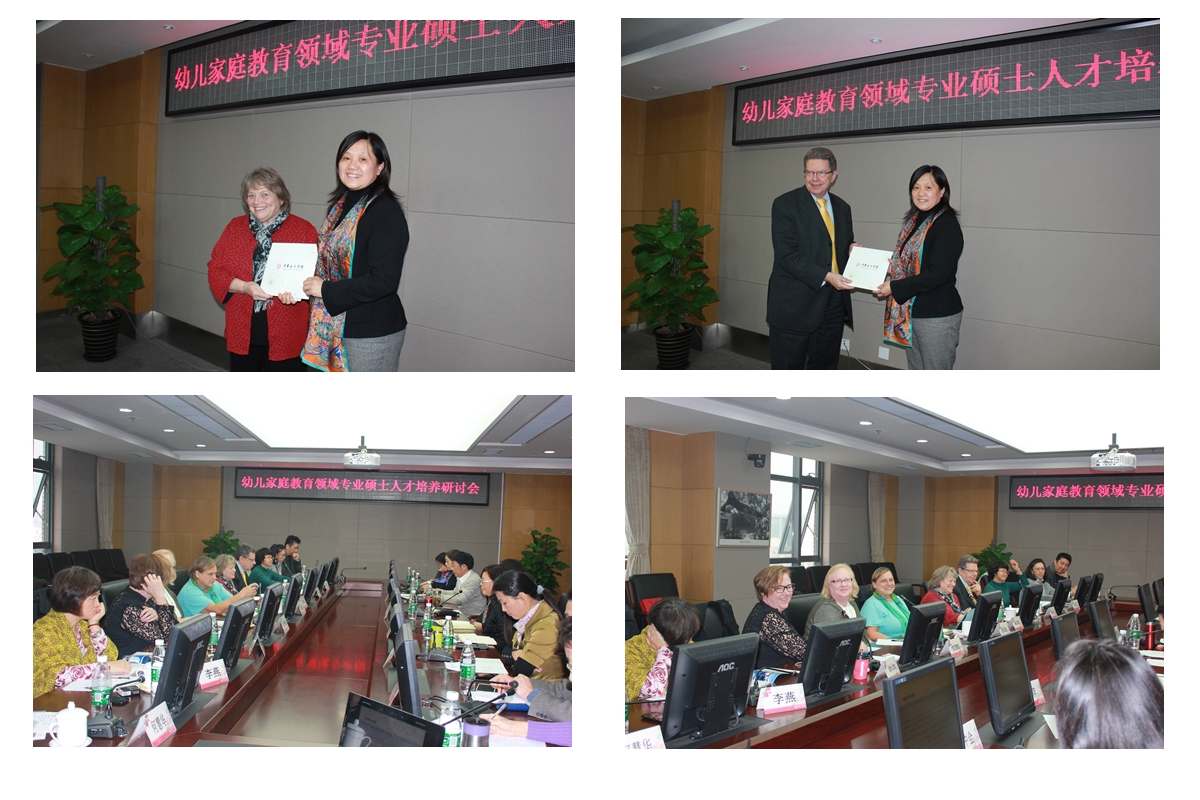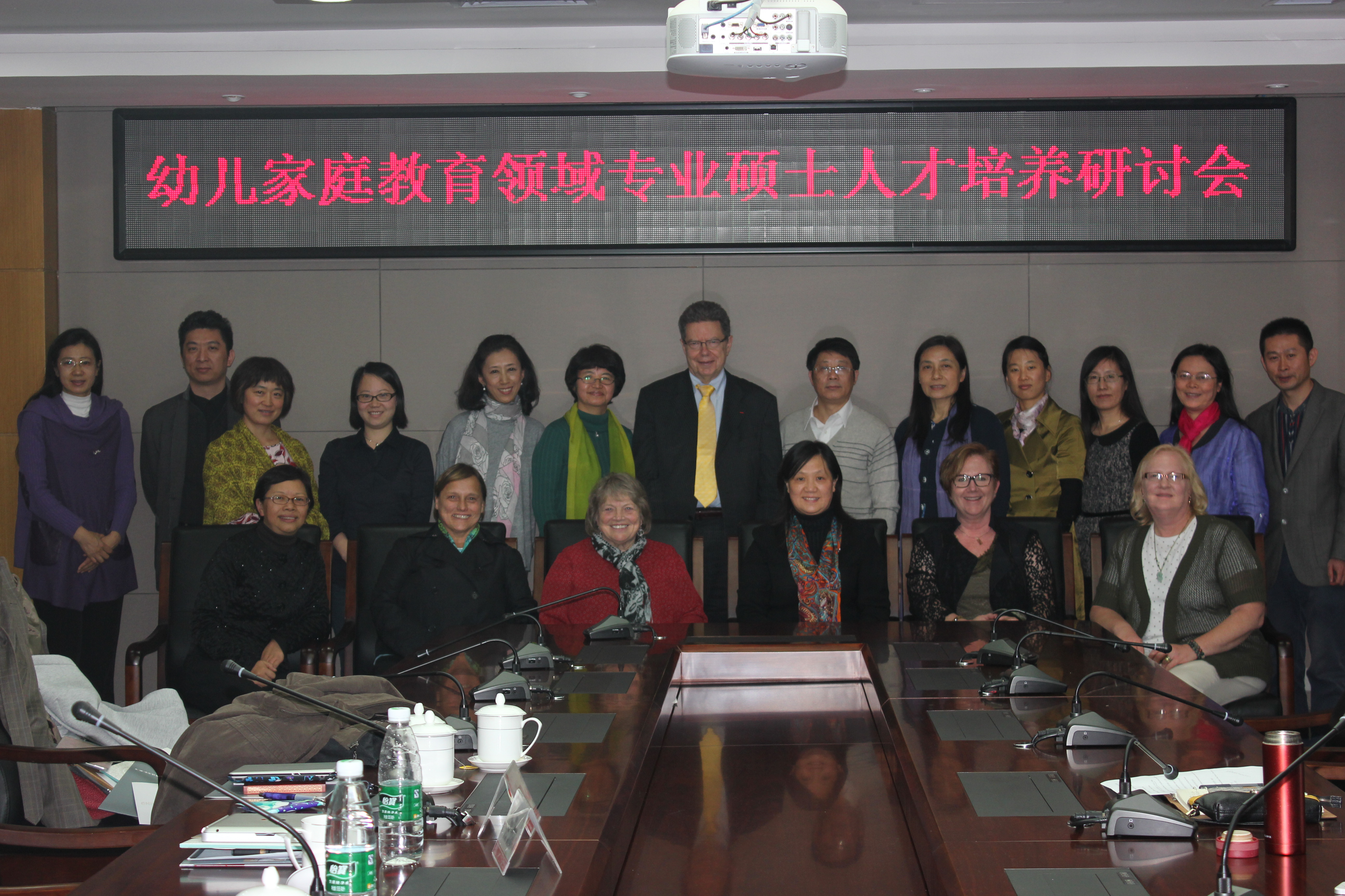 2014年10月31日,由中華女子學院兒童發展與教育學院主辦的“ 幼兒家庭教育領域專業碩士人才培養研討會”在中華女子學院教圖樓舉行。中華女子學院宋勝菊副校長出席會議并致辭。參與此次研討會的專家來自美國卡羅大學的Roberta L. Schomburg教授(美學前教育研究會副會長),法國巴黎第十大學的Paul Durming教授,美國明尼蘇達州立大學(圣克勞德校區)的Kathy E.Johnson主任和Fran Umerski教授,美國美國卡貝爾大學Cheri J.Gilman教授, 新加坡智源教育學院的陳實博士、凌健主任,全國婦聯婦女研究所的和建花副研究員,上海師范大學教育學院學前教育系主任李燕教授、何慧華副主任,以及中華女子學院兒童發展與教育學院院長王練教授和學前教育系的教師。會議由兒童發展與教育學院的余珍有教授主持,與會專家在現場進行了熱烈的研討,并在家庭教育人才培養的目標定位、家庭教育工作者核心專業能力的確定、家庭教育領域專業碩士核心專業課程的設置等方面提供了寶貴的經驗,對我院幼兒家庭教育專碩的人才培養和專業建設具有重要的借鑒價值。