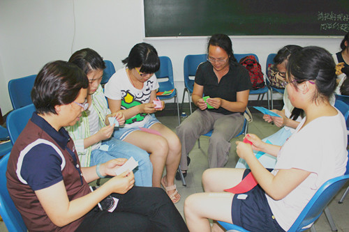 在活動籌備階段,我們邀請到了心理學專業(yè)教師進行了精心的活動設計,共一小時的活動分為了四個環(huán)節(jié)。首先是通過簡單有趣的心理小游戲進行了分組,然后師生齊動手,分別制作一個屬于自己的小玩偶,并通過小玩偶來實現(xiàn)師生之間相互對話,彼此訴說自己在學習生活等方面遇到的困難。隨后大家寫下自己最想聽到別人對自己說的話,相互鼓勵。最后,活動在雨點般的掌聲中順利結束。