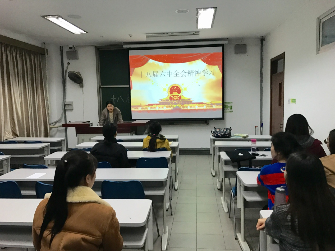 為了學(xué)習(xí)貫徹十八屆六中全會精神,落實黨支部“三會一課”制度,增強黨員思想政治教育,兒童發(fā)展與教育學(xué)院第二黨支部于2016年11月17日晚在主樓209教室開展了學(xué)習(xí)十八屆六中全會精神二級黨課活動。