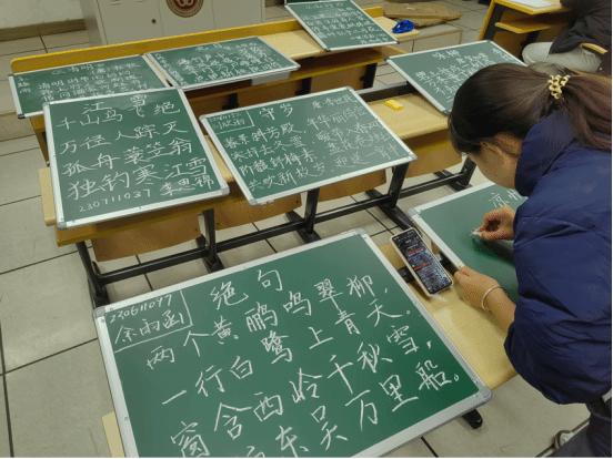 同學們踴躍參與,熱情高漲。初賽以線上形式展開,參賽選手在限定時間內提交作品,依據分數高低選拔優秀選手晉級決賽。初賽之后,決賽階段如火如荼展開。在硬筆字與粉筆字比賽中,參賽者們充分展示了教育的成果。普通話比賽環節,參賽者們則以聲情并茂的講述,精彩演繹了教育的語言藝術之美。