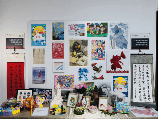 作為學院品牌活動之一,本屆學生作品展得到了全院學子的積極響應與熱情參與。展覽作品涵蓋書畫、手作、創(chuàng)意設計三大核心領域,每一件作品均由同學們精心打磨而成,凝聚著青年學子的奇思妙想與創(chuàng)作熱忱。書畫作品中,有的色彩明艷、筆觸稚嫩卻飽含童真,有的筆墨清雅、意境悠遠盡顯專業(yè)功底;手作作品里,黏土造型、布藝創(chuàng)作、手工編織等形式豐富多樣,細節(jié)處彰顯巧思,傳遞著對生活的熱愛;創(chuàng)意設計類作品則視角獨特、構(gòu)思新穎,將專業(yè)知識與藝術(shù)創(chuàng)意深度融合,展現(xiàn)了同學們扎實的專業(yè)技能與創(chuàng)新思維。