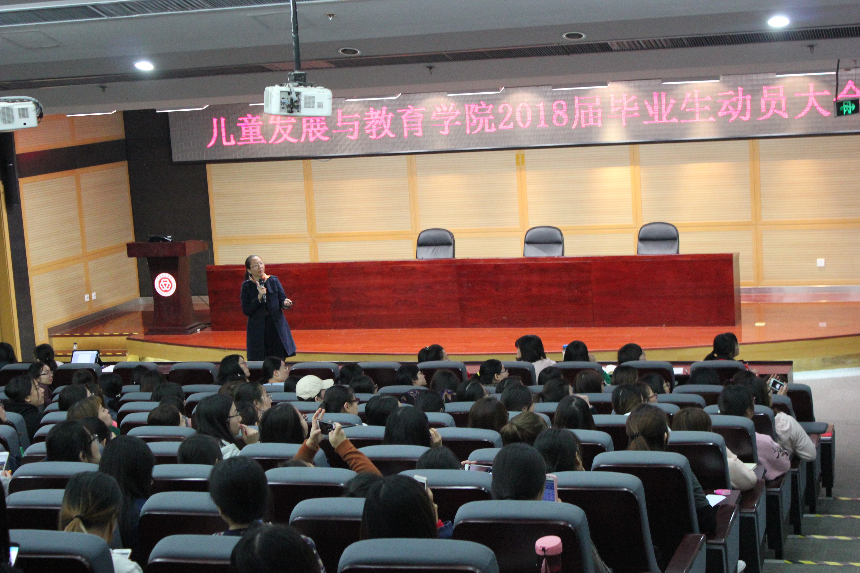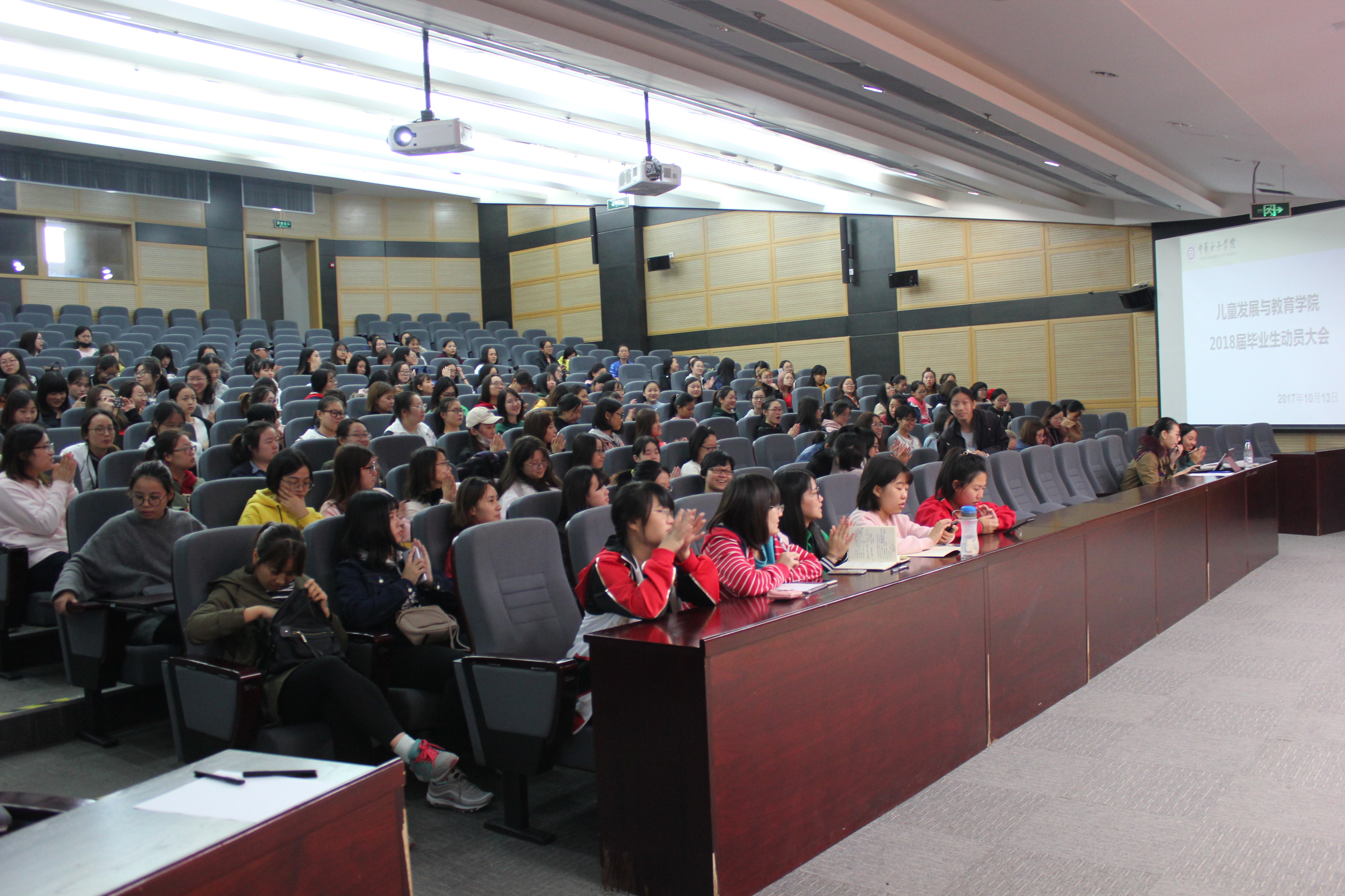 10月13日中午,兒童發展與教育學院在教圖樓一層報告廳召開了2018屆畢業生動員大會,來自學前教育和應用心理專業的共211名畢業生參加了此次會議。