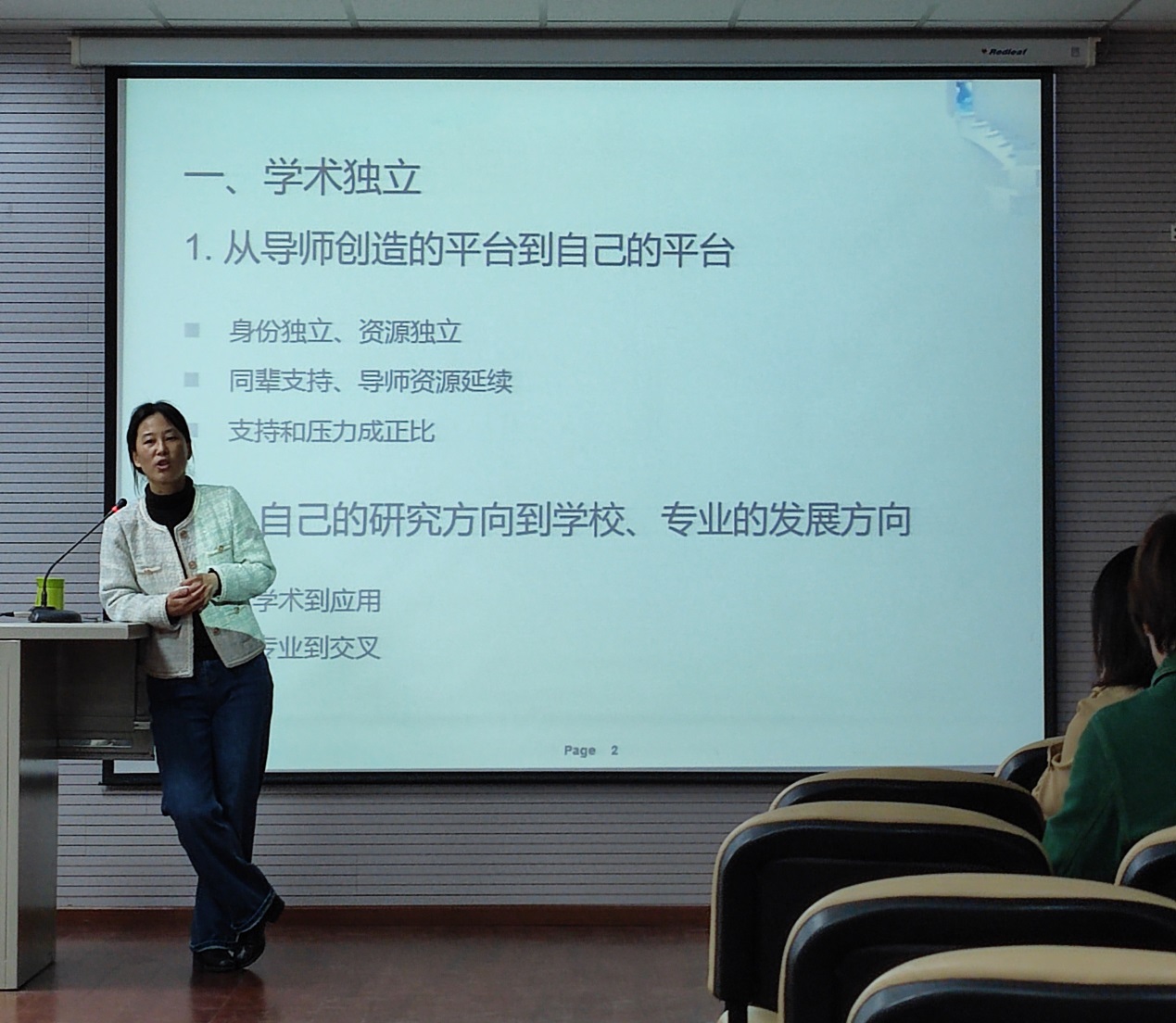 接下來,池麗萍教授分別從“學(xué)術(shù)獨(dú)立”、“學(xué)術(shù)轉(zhuǎn)向”、“從專業(yè)發(fā)展到生活幸?!比蠓矫妫Y(jié)合自身體悟,提出并詳細(xì)解釋了每一位教師都必須認(rèn)真反思和不斷探索的諸多重要問題和發(fā)展難題:如何實(shí)現(xiàn)學(xué)術(shù)身份獨(dú)立和資源獨(dú)立,打造自己的學(xué)術(shù)平臺?如何平衡自己的研究興趣與國家、學(xué)校、專業(yè)的發(fā)展需求?如何拓展自己的學(xué)術(shù)視野,尋求跨學(xué)科的交叉與合作?如何讓自己的學(xué)術(shù)研究,在社會生活中更有意義?如何理解專業(yè)與生活的關(guān)系,有效提升自身的專業(yè)認(rèn)同感和生活幸福感?諸如此類,不勝枚舉。