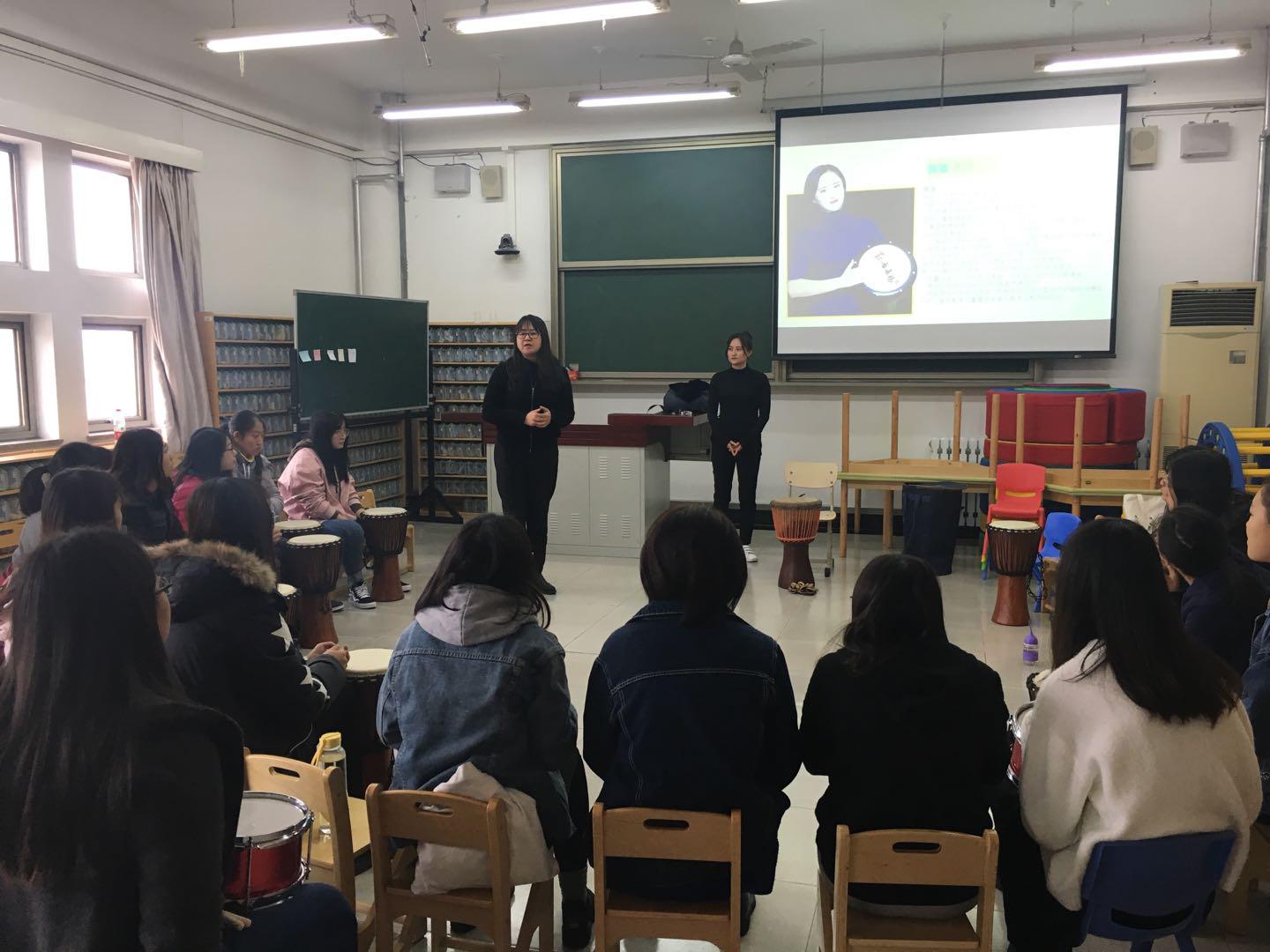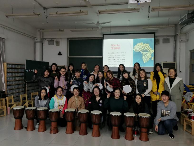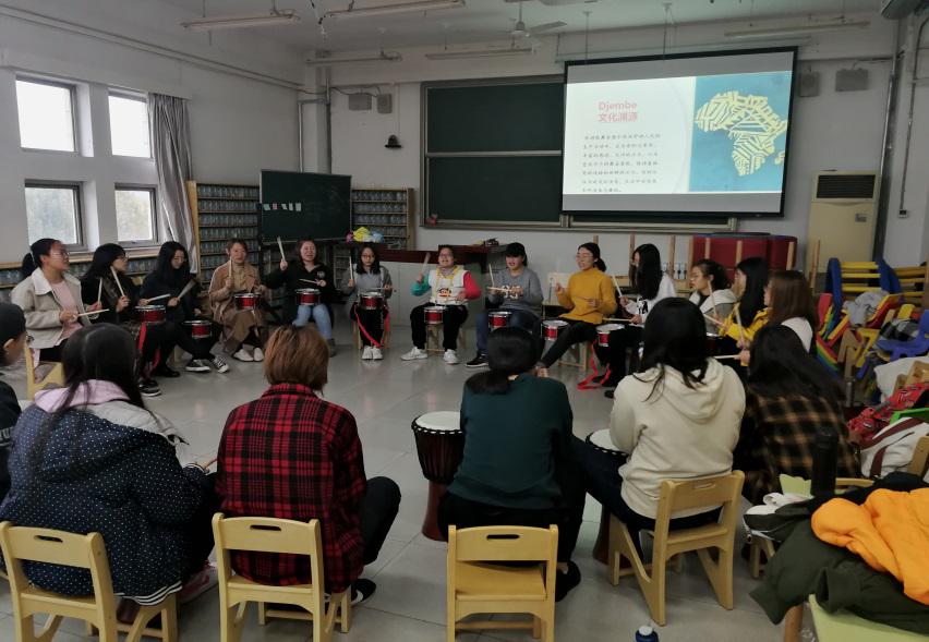 在2018年11月5日—9日的教學實踐周,兒童發展與教育學院大二年級的80多位同學,選修了非洲鼓教學實踐課,開啟了專業學習中的非洲鼓啟蒙學習。
