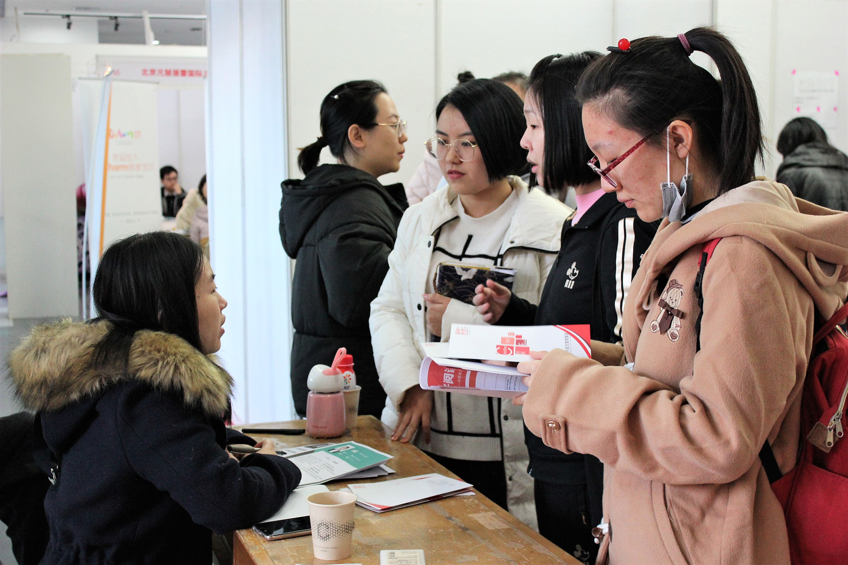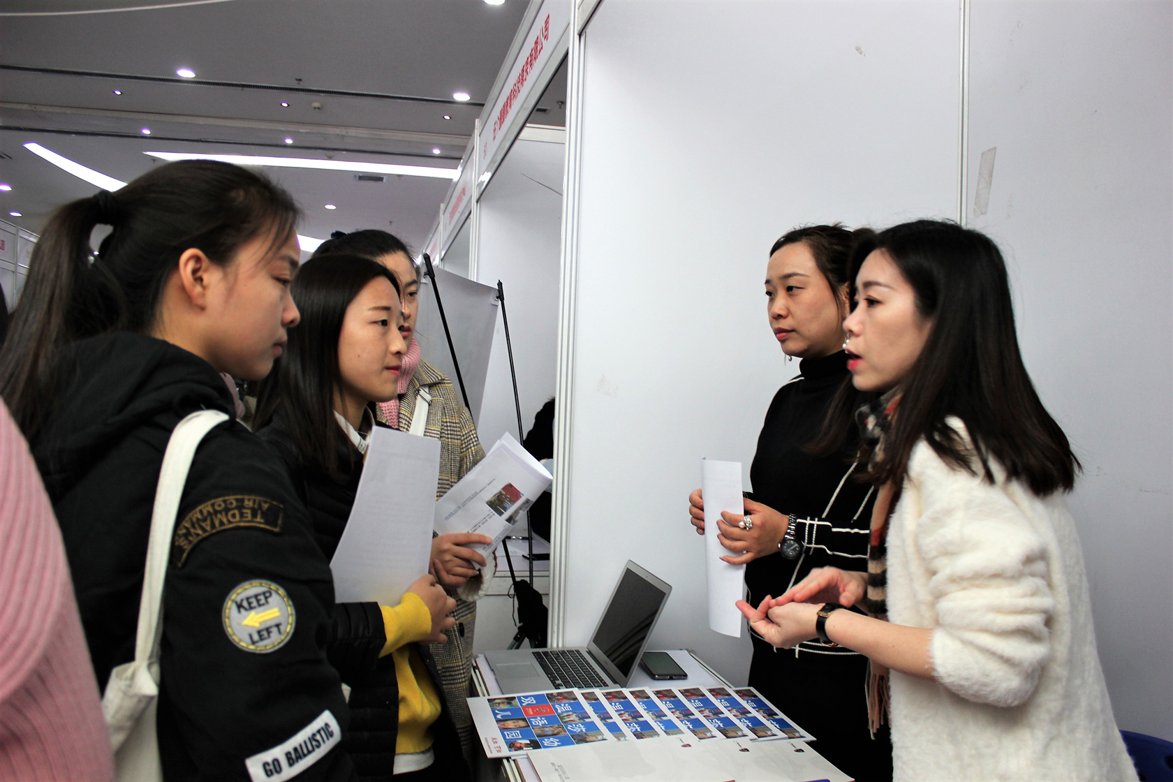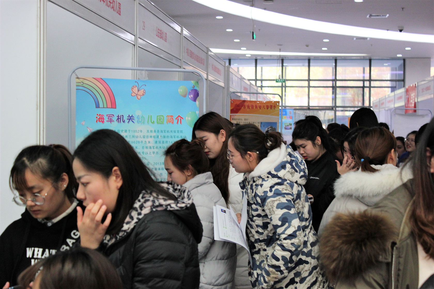 招聘會上,全校學前教育專業的同學們積極參與,她們求職熱情高漲,帶著自己精心制作的簡歷與用人單位積極互動,贏得了用人單位的高度肯定。