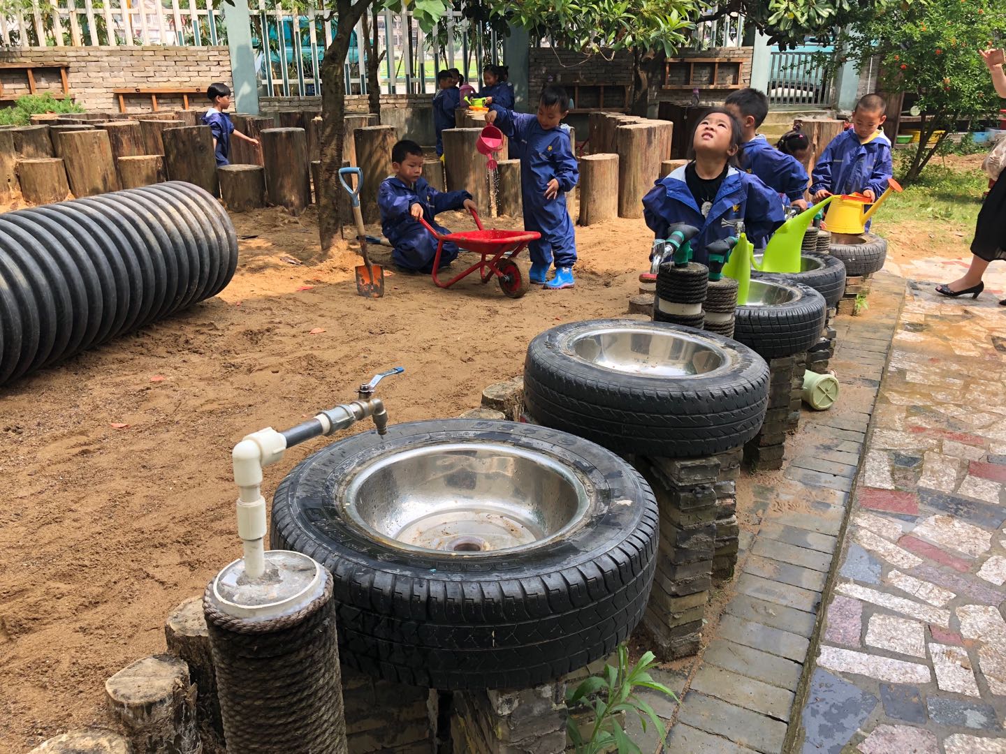 考察團成員走進安吉縣紫梅幼兒園、安吉噯咪兒幼兒園和安吉縣機關幼兒園這三所不同辦園性質的幼兒園,對其游戲教育活動進行了實地觀摩和觀察。在幼兒園貼近自然和生活的游戲環境、豐富多樣的游戲材料中,孩子們自己選擇和搭建游戲場地,齊心地協作、勇敢地挑戰、愉快地交談、投入地玩耍、專注地探索……他們在游戲中展現的勇氣、探索精神、旺盛的好奇心、生命力和發展水平令考察團的每一位老師都激動不已,不禁拍手稱贊!