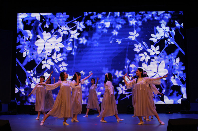 段伯毅老師指導下的紅帆合唱團演出,成了晚會靚麗的名片,給觀眾奉上了天籟般的聲音。舞蹈表演《黛帕—四時令》、《小跳蛙》、《失戀陣線聯盟》、《校園變奏曲》,既體現了同學們的專業(yè)特色,也展示了青春的洋溢色彩;小品《我的大學生活》、《女院有嘻哈》以夸張的動作表演,生動地還原了校園生活的主題;張倫老師、周慧娟老師和教育學院同學們聯袂表演的樂器合奏《牧民之歌》,用舒展的旋律把觀眾們的聯想帶到了遼闊的大草原;應用心理專業(yè)同學們的手語表演《冰凌花》,同學們將形體美和音樂美表現的淋漓盡致。兄弟院校的同學們也來為第二課堂文化節(jié)閉幕式添彩,北京警察學院的同學們帶來了街舞《失戀無罪》和相聲《我要穿越》。