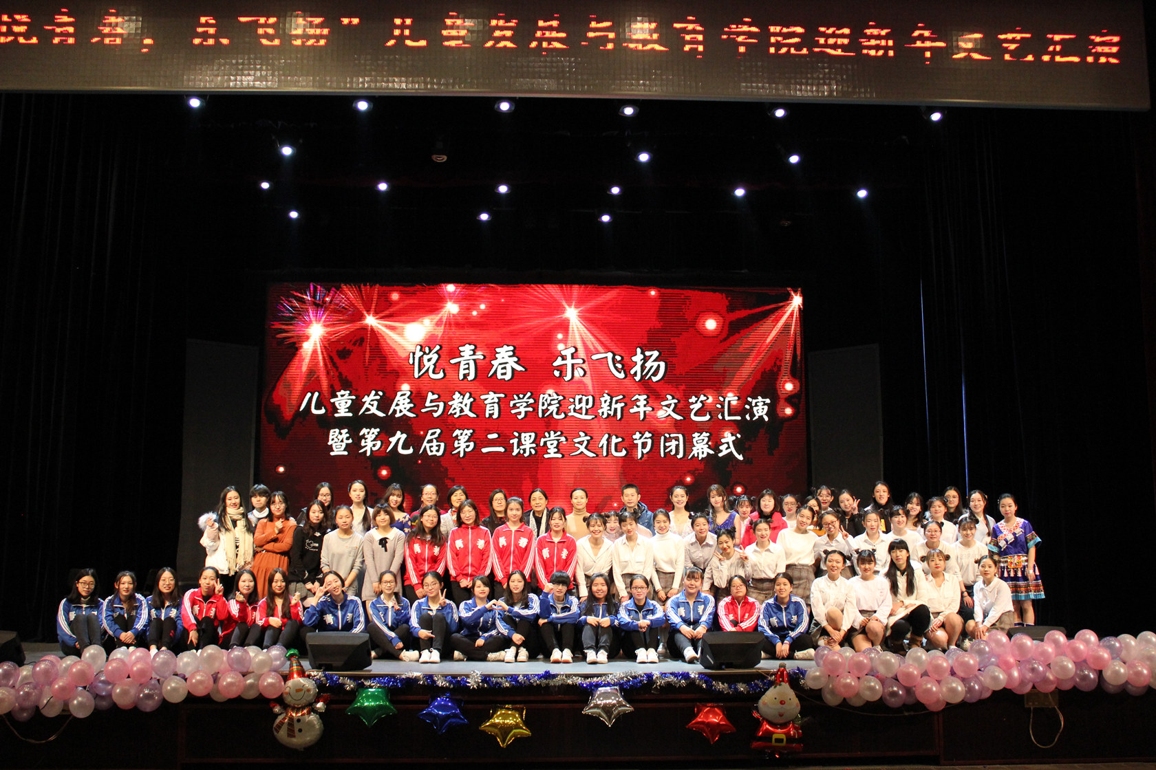 12月26日下午,以“悅青春 樂飛揚”為主題的兒童發(fā)展與教育學院迎新年文藝匯演暨第九屆第二課堂文化節(jié)閉幕式在學校禮堂舉行,北校區(qū)、法學院、社會工作學院、高職學院、外語系等相關部門的老師們,與教育學院的師生們共同觀看了文藝匯演,迎接2018年的到來。