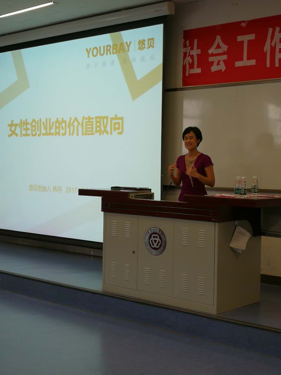林丹女士為同學們講述了自己的創業經歷,她講到自己選擇親子圖書館作為創業目標的初心是源于童年喜歡讀書的經歷,而大學所學的法學專業及畢業后的IT行業從業經歷也在能力和思維方面為她的事業奠定了堅實的基礎。從自己的成長經歷中,林丹女士意識到童年是一個人人生的起點,而父母就是孩子最好的“起跑線”,因此,她所提倡的“親子閱讀”是父母以書為媒介,向孩子傳播人生觀、世界觀和父母的教養觀,親子閱讀是父母陪伴孩子、表達愛的最好方式,親子閱讀不僅是教育的途徑,更是能密切親子關系的紐帶。