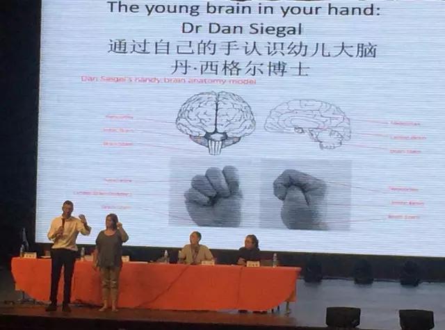邁克爾講課一向以風趣生動、互動性強著稱。今天下午的會議內容,卻以枯燥的理論介紹為主。如何說清楚幼兒大腦中 “爬行動物腦、哺乳動物腦和理性動物腦”三個層次的發育規律?如何更生動地讓老師們理解三個層大腦之間的關系?邁克爾老師與助理通過簡單的手型演示,讓難題迎刃而解。