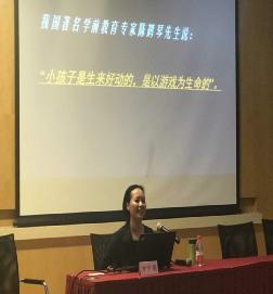 作為四位受邀專家之一,中華女子學院兒童發展與教育學院的董麗老師以《幼兒音樂游戲實踐與應用》為題,從“幼兒歌唱游戲”、“律動游戲”、“演奏游戲”、“欣賞游戲”等四個方面進行了專業的闡述,精彩的報告得到了與會專家和教師們的好評。