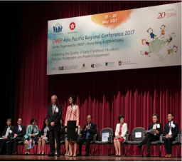2017年5月18-20日,由世界學前教育組織(OMEP) 主辦的2017年世界幼兒教育聯會亞太地區研討會在香港浸會大學舉行,兒童發展與教育學院戴莉、史明潔、賈維、吳丹與高職學院張靜五名教師赴港參會。此次研討會欣逢香港特別行政區成立二十周年及世界幼兒教育聯會香港分會(OMEP-Hong Kong)成立25周年,以“從政策、教學及家長出發 提升幼兒教育質素”為主題,匯聚了1100多位來自亞洲、歐洲、大洋洲及北美洲多地的學者和幼兒教育工作者,通過主題演講、專題論壇、論文分享、海報展覽、教學工作坊、座談會以及幼兒園參觀等多種方式,將與會者的學術研究、實踐經驗進行分享。