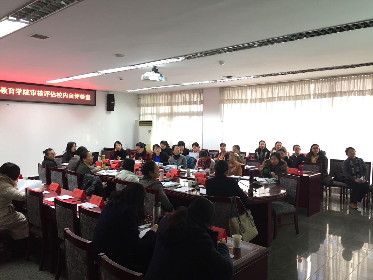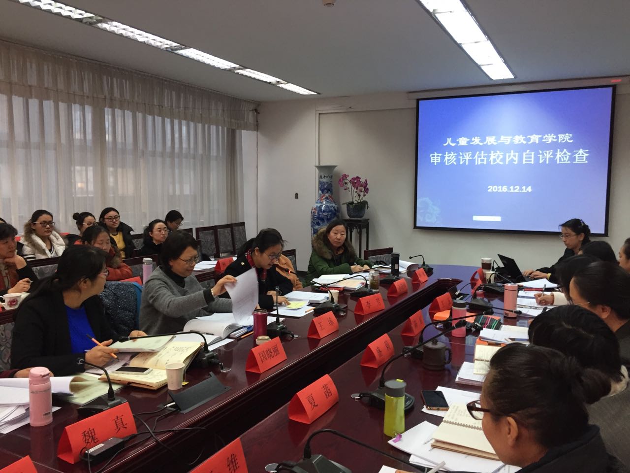 根據學校關于《開展本科教學工作審核評估自評工作的通知》,兒童發展發展與教育學院于2016年12月14日星期三下午1:30-5:00 在主樓217第七會議室召開了兒童發展與教育學院審核評估校內自評檢查匯報會。會議由兒童發展與教育學院黨總支副書記盛莉主持,兒童發展與教育學院副院長陳虹做主要匯報,兒童發展與教育學院全體教職工、部分學生代表和質監處副處長陳嵐、史曄華列席參加。學校互評工作組的專家成員包括:王練(中華女子學院副院長,校專家組組長)、國曉麗(金融系副系主任,校專家組副組長)李芳(對外經貿大學教務處處長,校專家組成員)、孫曉梅(女性學系教授、校專家組成員)魏真(教學督導組成員,校專家組成員)、李敏(社會工作學院院長助理、校專家組成員兼秘書)。