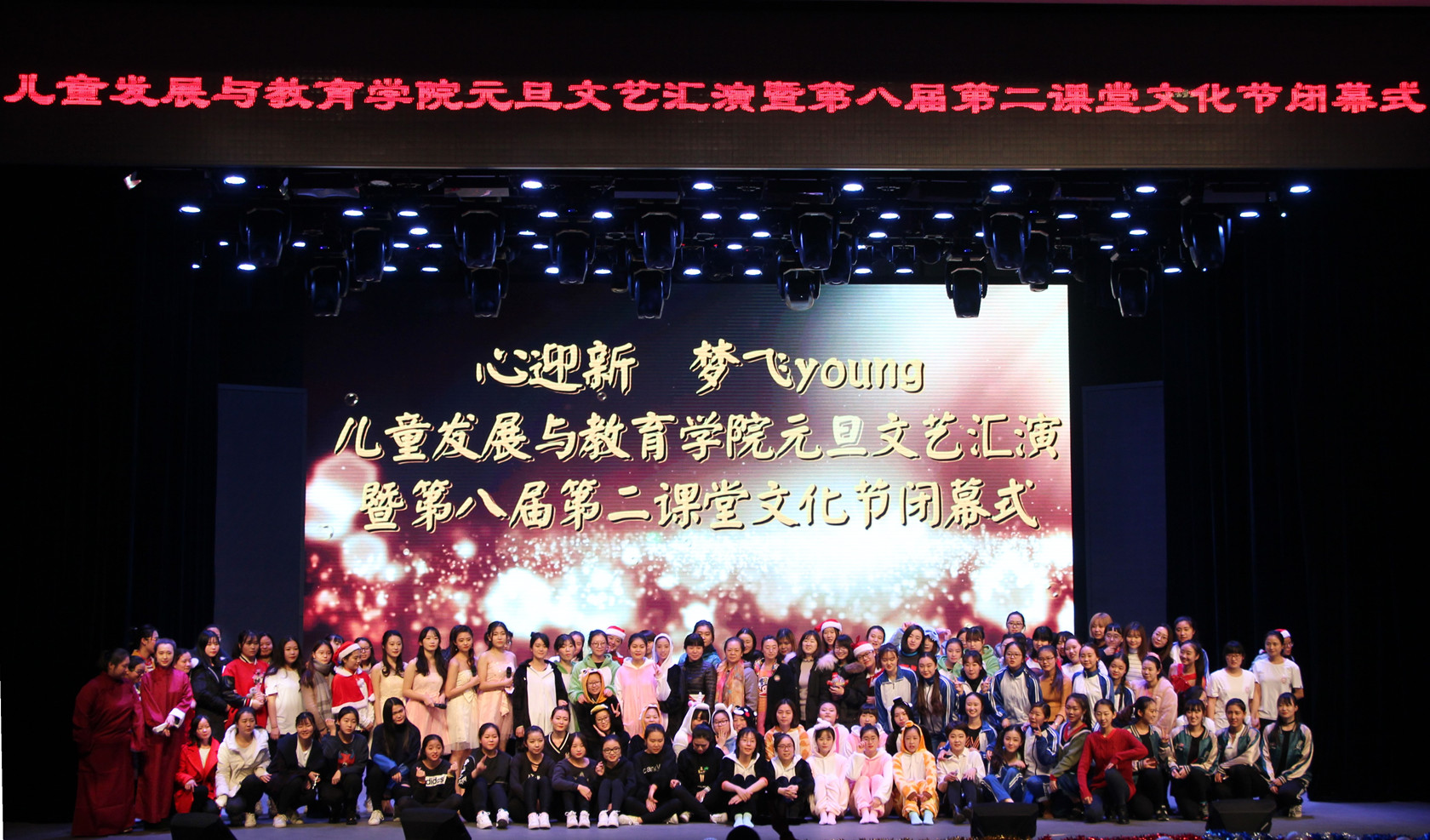 2016年12月27日下午,兒童發(fā)展與教育學院“心迎新 夢飛young”元旦文藝匯演暨第八屆第二課堂文化節(jié)閉幕式在學校禮堂隆重舉行,學生工作(部)處處長兼團委書記韓燕、北校區(qū)主任郭春鴻、北校區(qū)黨總支副書記張曉亮、兒童發(fā)展與教育學院黨政領(lǐng)導(dǎo)以及來自其他院系和相關(guān)職能部門的老師,與學院全體學生一起,共同觀看了文藝匯演,迎接新年的到來。
