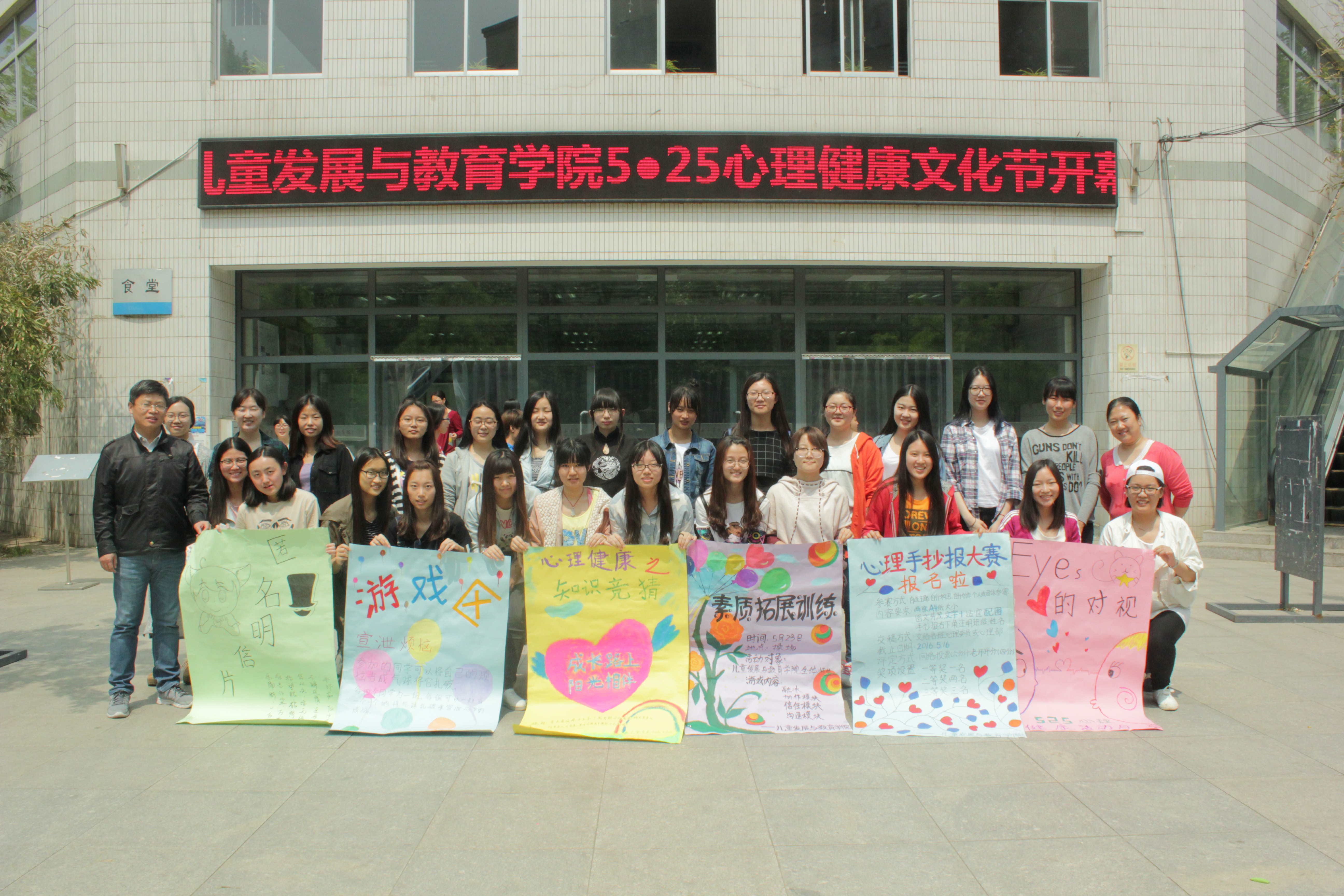 2016年5月5日中午,兒童發展與教育學院在食堂門口舉辦了5·25心理健康文化節開幕式,在同學們的熱情參與下,開幕式順利舉行。