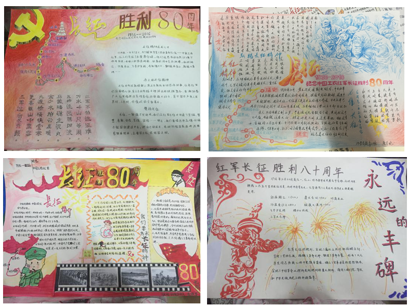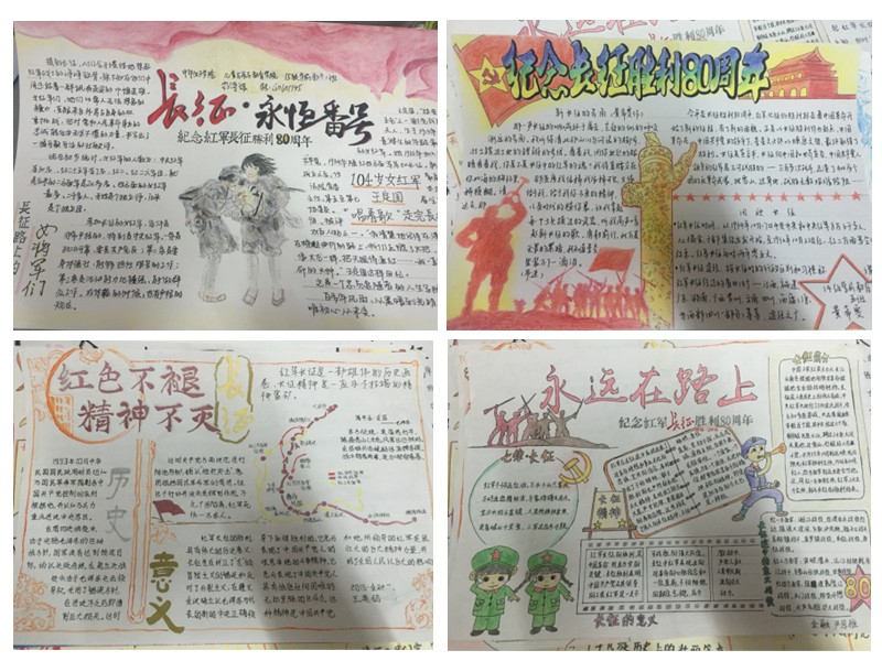 為紀(jì)念紅軍長(zhǎng)征勝利80周年,使同學(xué)們牢記歷史,緬懷革命烈士,10月18日-26日,兒童發(fā)展與教育學(xué)院舉辦了以“銘記長(zhǎng)征歷史 弘揚(yáng)紅色精神”為主題的紀(jì)念紅軍長(zhǎng)征勝利80周年手抄報(bào)大賽。