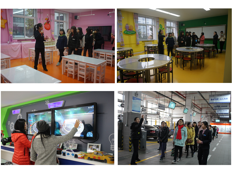 踏進校門,職業學校的“厚德、勵學、自強、競業”的校訓吸引了同學們的注意,校園干凈的環境、整齊的布局也讓同學們留下了深刻的印象,體現了這所學?!鞍鸭毠澴龀蓸O致,把簡單做出完美”的理念。同學們在昌平職業學校老師的引領下,先后參觀了學校的校史館、航空樓、綜合實訓樓、中德汽車教育文化交流中心、汽車科普體驗中心以及學前樓,同學們贊嘆于這些場所先進的教學設施和規范的教學管理。在學前樓,“塑幼師形象,修內在含韻”的理念,讓同學們默默吟念,美工室、口語室、聲樂室、保育室、舞蹈實訓室、早教實訓室、模擬教學實訓室等教學場所,以其逼真現場融入感,也讓同學們感慨陣陣。2012級學前教育專業的袁夢淼感慨道:“這是我感觸最大的地方,每個職業都是需要豐富的實踐經驗來不斷地使自己更加進步……知識的儲備固然重要,但是沒有在現實生活中進行論證,那么它們也不會是真理?!?/p>