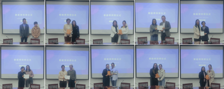 儀式伊始,新教師與資深教師的合影環節成為焦點。學院領導為各位資深教師頒發了象征師徒關系的證書,新教師們與資深老師一同站在臺上,留下了珍貴的合影。