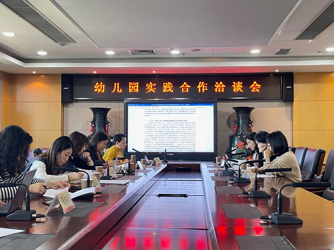 隨后,趙梅菊博士介紹了春季學期學生教學實踐的安排,朝花幼兒園對于接收學生見習和實習的工作思路進行了說明。三方參會成員最后圍繞科研課題合作、學前教育專業實習實踐合作問題進行了深入探討,均希望以此次見面為契機,在尋求機制創新和經費支持的基礎上進一步拓展合作。