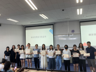 總結(jié)會(huì)開始,17所實(shí)習(xí)幼兒園的學(xué)生代表將2個(gè)月的實(shí)習(xí)生活濃縮在幾分鐘的ppt和視頻中進(jìn)行展示,她們分享了實(shí)習(xí)過程中的學(xué)習(xí)收獲與成長體會(huì)。學(xué)生展示分享結(jié)束后,學(xué)院指導(dǎo)教師為優(yōu)秀實(shí)習(xí)生頒發(fā)證書并合影留念。