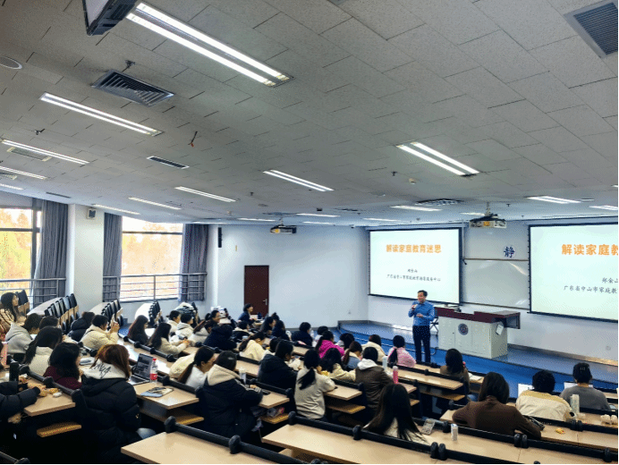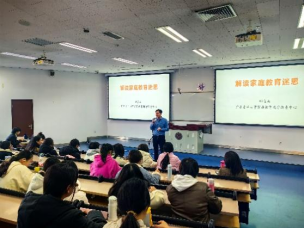 2024 年 11 月 18 日上午,中山市家庭教育指導服務中心鄭金山主任走進家庭教育大師課,為師生們帶來了《解讀家庭教育迷思》的專題講座,講座由兒童發(fā)展與教學學院副院長房陽洋主持。