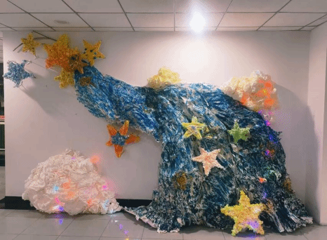 2024 級(jí)學(xué)前教育2班同學(xué)的作品“激光的星空”以非凡的毅力集體再現(xiàn)了梵高的經(jīng)典畫作《星月夜》。在有限的材料與時(shí)間內(nèi),同學(xué)們?cè)诶蠋煹姆e極支持和幫助下,共同克服困難,以現(xiàn)代光影技術(shù)重新詮釋經(jīng)典畫作,最終完成了這幅充滿力量的作品,展現(xiàn)出不畏挑戰(zhàn)的協(xié)作精神。