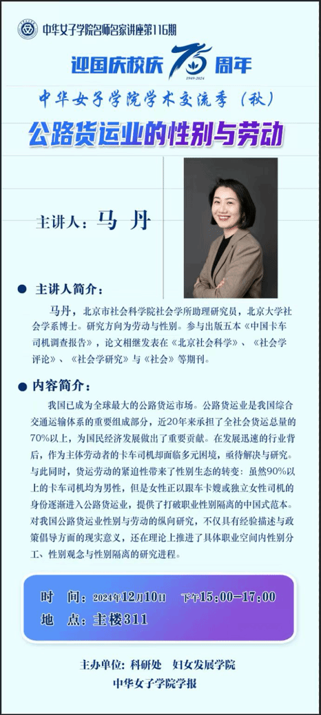 講座預告:公路貨運業的性別與勞動——中華女子學院名師名家講座暨婦女發展學院女學圓桌