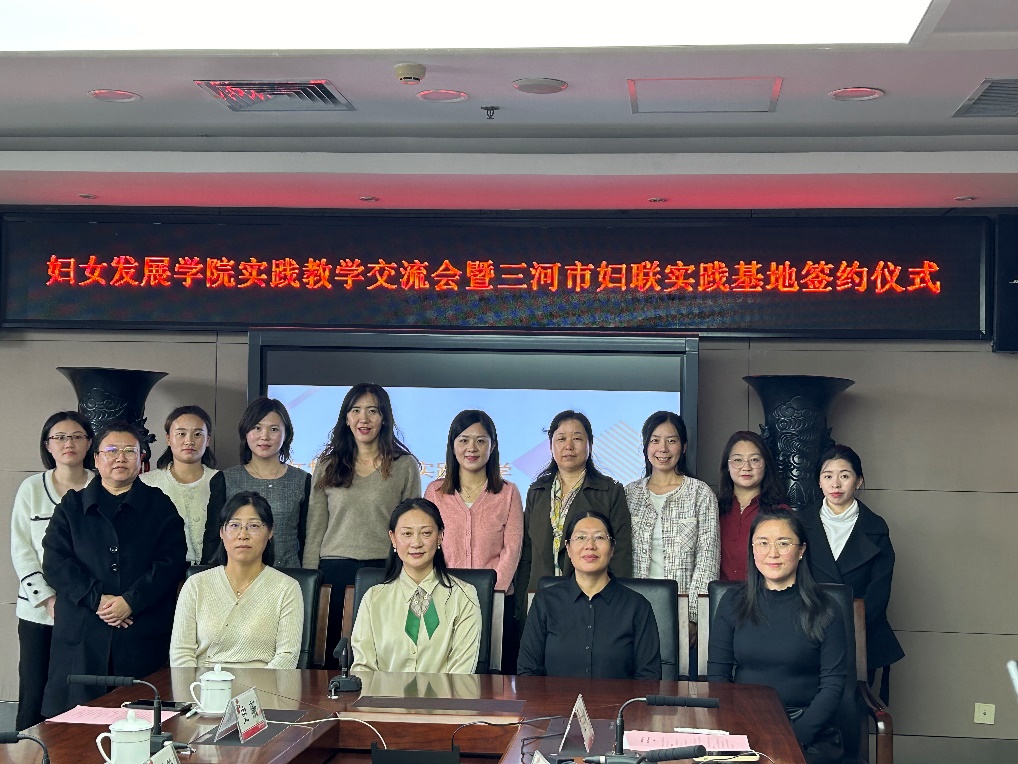 為深入學習貫徹中國婦女十三大精神,圍繞培養時代新人的戰略任務,更好地建設女性學國家一流本科專業,2023年11月2日,婦女發展學院實踐教學交流會暨三河市婦聯實踐基地簽約儀式在教圖樓第一會議室成功舉行。河北廊坊三河市婦聯主席祝志敏等一行六人、北京航空航天大學副教授戴蓓芬、北京理工大學助理教授史薇、中華女子學院圖書館副館長吳倩、婦女發展學院相關教師參與了本次實踐教學交流會暨實踐基地簽約儀式。