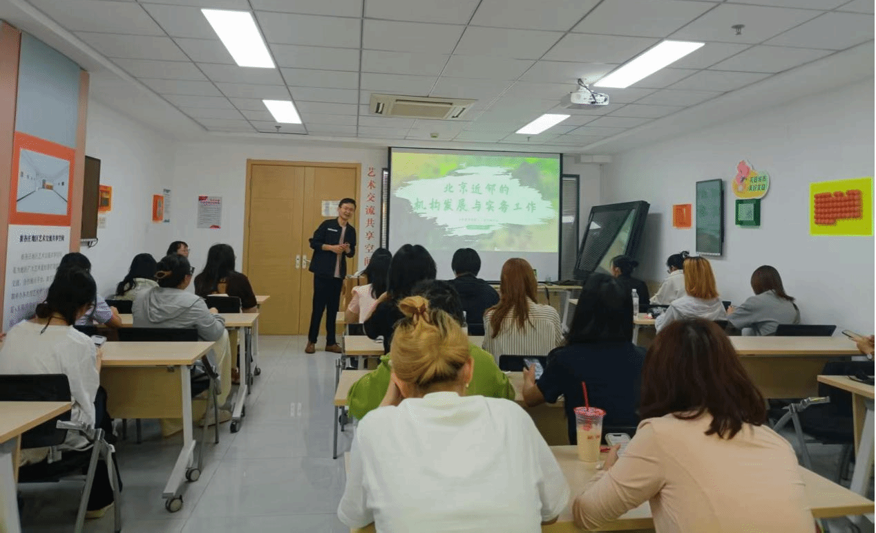 在北京近鄰社會工作服務(wù)中心,魏儆麟老師詳細介紹了機構(gòu)在農(nóng)轉(zhuǎn)居社區(qū)治理和三親教育方面的創(chuàng)新實踐成果。中心通過開展豐富多彩的傳統(tǒng)文化活動、親子教育課程等,有效促進了居民的文化適應(yīng)和代際溝通。同學(xué)們對“三親教育”(親情、親社區(qū)、親自然)理念在社區(qū)教育中的應(yīng)用表現(xiàn)出了濃厚的興趣,并就如何在城市化進程中更好地保留傳統(tǒng)文化展開了熱烈討論,深刻感受到了傳統(tǒng)文化在現(xiàn)代社區(qū)建設(shè)中的獨特魅力與重要價值。