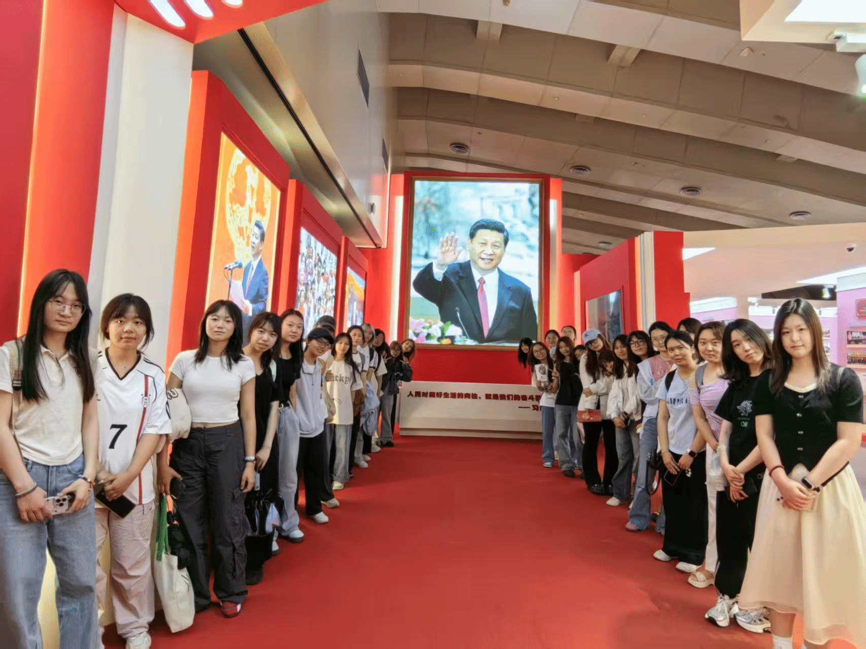 上午,探尋歷史中的女性力量。同學們走進中國婦女兒童博物館。在講解員的帶領下,同學們首先踏入古代杰出女性展區。婦好征戰四方的青銅鉞、武則天推動變革的珍貴文獻、馮嫽出使西域的歷史畫卷,生動展現了古代女性在政治、軍事、外交領域的卓越成就,讓大家驚嘆于千年前女性的智慧與魄力。移步近代展區,泛黃的家書、斑駁的勛章訴說著烽火歲月里的血色榮光。同學們認真聆聽“萬嬰之母”林巧稚守護生命的醫者仁心,駐足凝視趙一曼臨刑前寫給兒子的絕筆信,通過抗日女英雄成本華的影像,觸摸那段波瀾壯闊的歷史。革命女性們為民族解放事業拋頭顱、灑熱血的無畏精神,深深震撼著在場每一位同學。