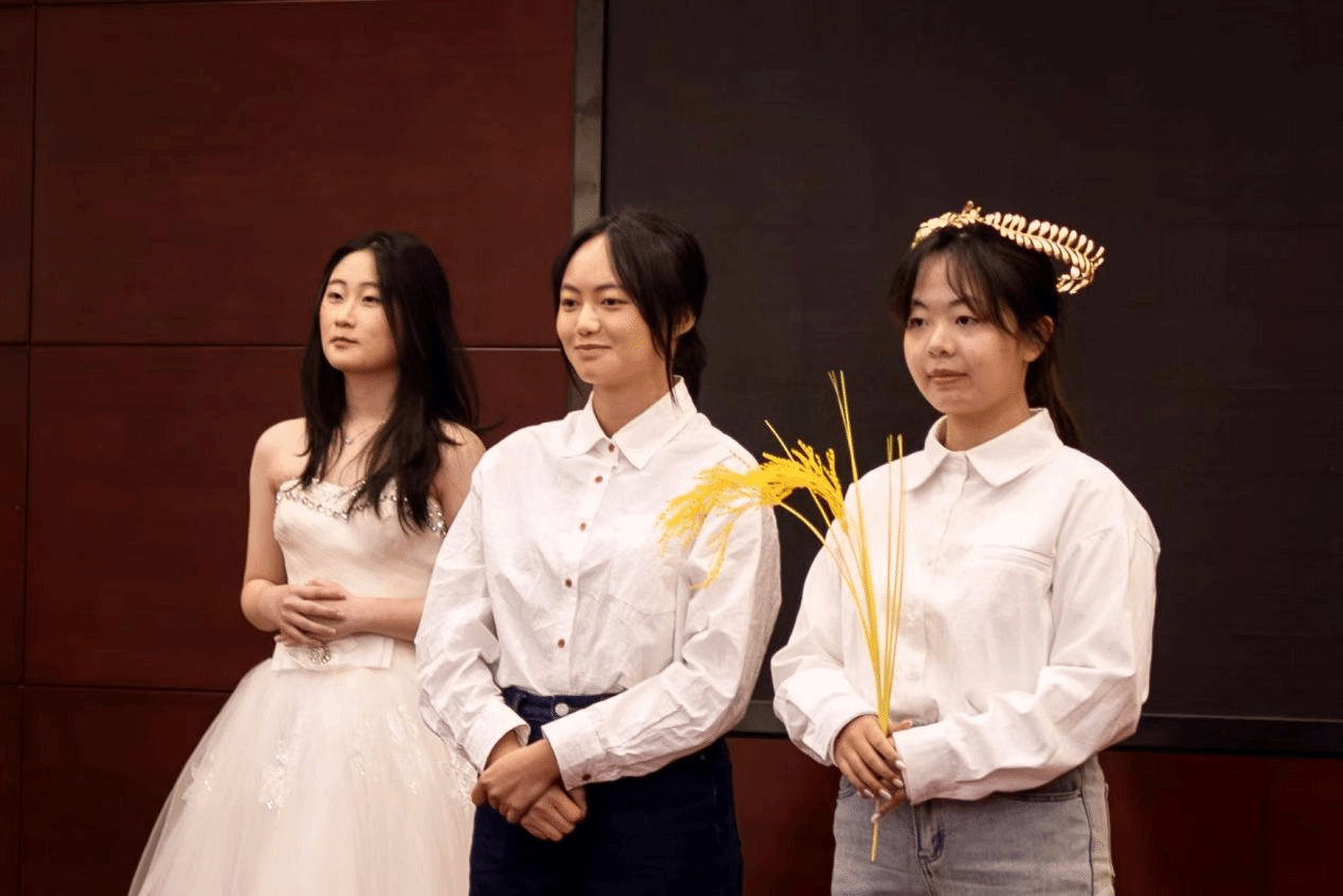 重建組承接傳統成人禮的性別議題,以“三加今釋:禮成·自成”為主題,完成現代女性成人禮的重構實踐:以麥穗為核心意象(象征成熟、豐收與成長),保留“三加”儀節并賦予新內涵——一加重建家庭角色,父母轉交麥穗、擁抱祝福,確立平等互愛的家庭關系;二加構建社交角色,師姐編織麥穗花環、師長授予校徽,傳遞“自尊自信自立自強”與“崇德至愛博學尚美”精神,搭建女性互助網絡;三加確立國家角色,將麥穗融入國徽穗環,實現個人價值與家國發展的聯結。這整體回應了傳統女性“天地何方”的追問,完成從“身份規訓”到“自我成就”的價值突圍。