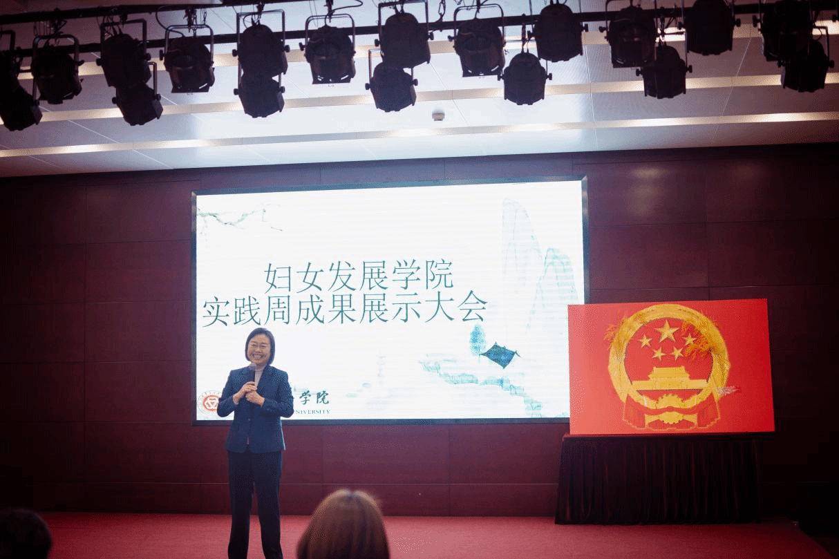 中華女子學院院長劉利群發表了總結性的講話。她特別指出,此次實踐周活動充分展現了同學們的創新思維和勇于探索的精神,各項實踐項目不僅形式新穎,而且內容富有深度,體現了同學們將理論知識與實踐相結合的能力。這種創新性的實踐活動對于培養學生的綜合素質和未來職業發展具有重要意義。劉利群院長還強調,“全球婦女能力建設中心”在我校揭牌,“全球數字賦能婦女發展交流合作中心”落成啟用,為我校師生參與全球婦女事業發展搭建了重要平臺,也讓我們清晰看到女性發展事業穩步向前的積極態勢與可期前景。她鼓勵同學們按照習近平總書記的囑托和希望,繼續保持積極向上的態度,在未來的學習和生活中不斷追求卓越,為女性發展事業貢獻力量。
