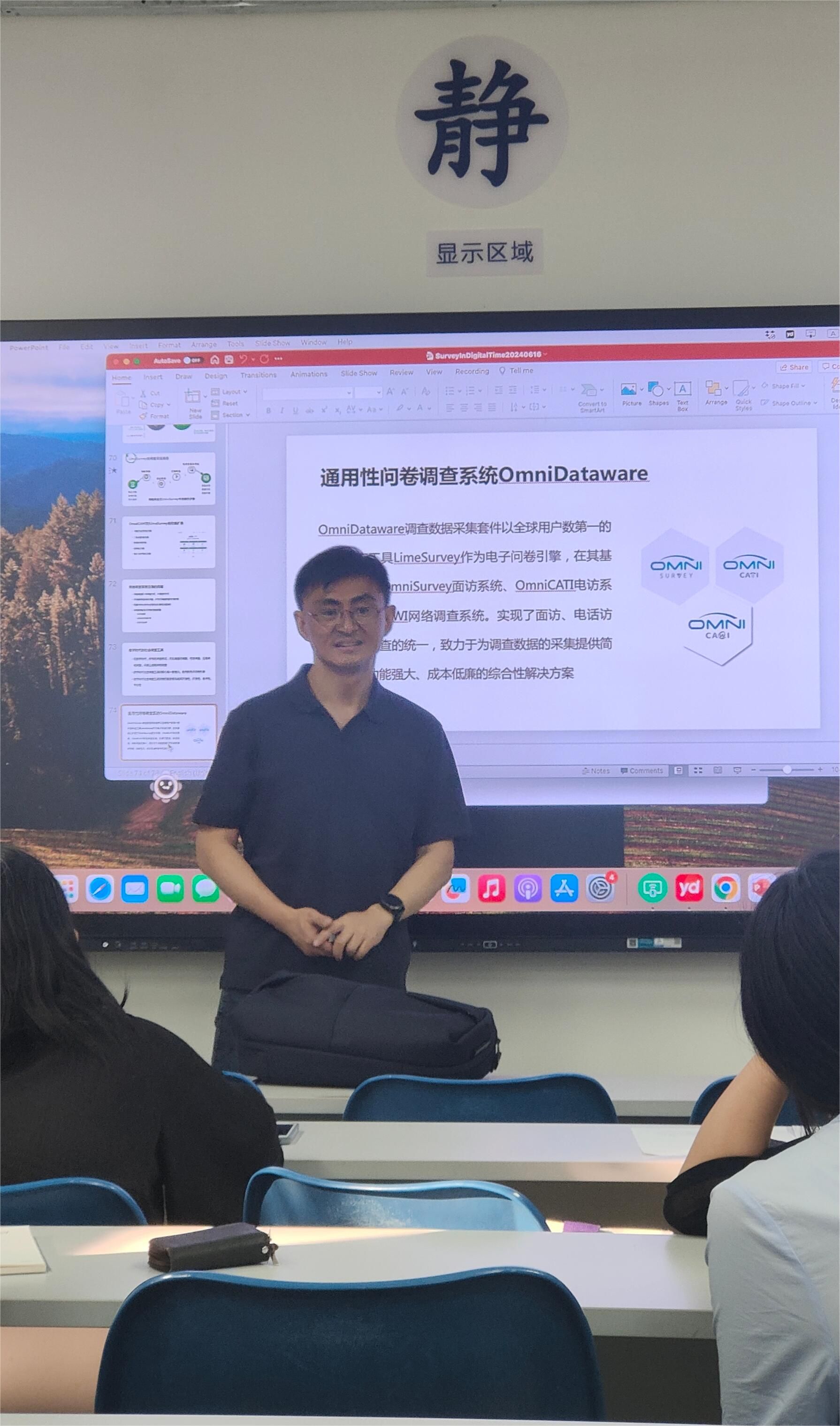 以OmniSurvey為例,王衛(wèi)東副教授現(xiàn)場(chǎng)演示了CAPI類系統(tǒng)在問卷調(diào)查中的使用,這類用于數(shù)字時(shí)代面訪的工具,可以方便地安裝在多個(gè)移動(dòng)設(shè)備上,通過聯(lián)網(wǎng)實(shí)現(xiàn)功能但并不依賴于互聯(lián)網(wǎng),且具有強(qiáng)大地項(xiàng)目管理功能,大大的減少了后期的繁瑣工作。講座最后王衛(wèi)東副教授簡(jiǎn)要總結(jié)了如何將開放式電子問卷引擎、云語音、人工智能、眾包模式等新技術(shù)新模式應(yīng)用于面訪調(diào)查、電話調(diào)查、網(wǎng)絡(luò)調(diào)查等數(shù)字時(shí)代的社會(huì)調(diào)查。