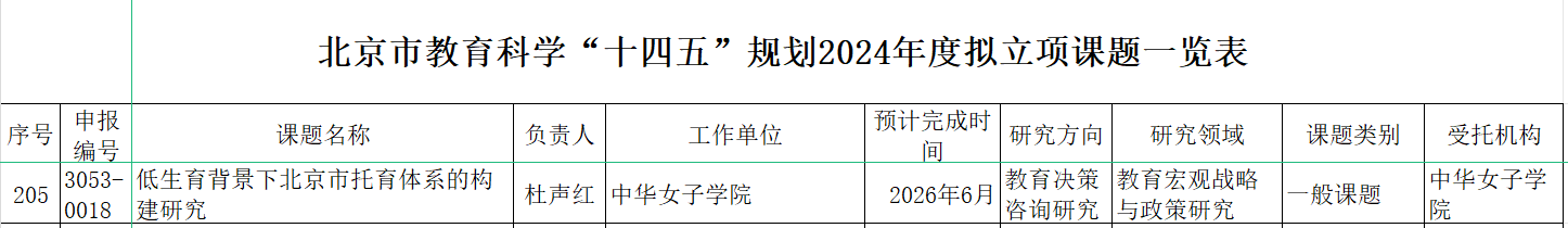 此前,我院教師杜聲紅已獲批2024年度北京市教育科學“十四五”規劃一般課題“低生育背景下北京市托育體系的構建研究”立項。該課題緊密契合當前社會關注的托育熱點,深入貫徹北京市關于優化生育政策、促進人口長期均衡發展的戰略部署,旨在通過實證研究為北京市構建科學、高效的托育服務體系提供堅實的數據支撐與理論參考,回應社會關切、服務地方發展。