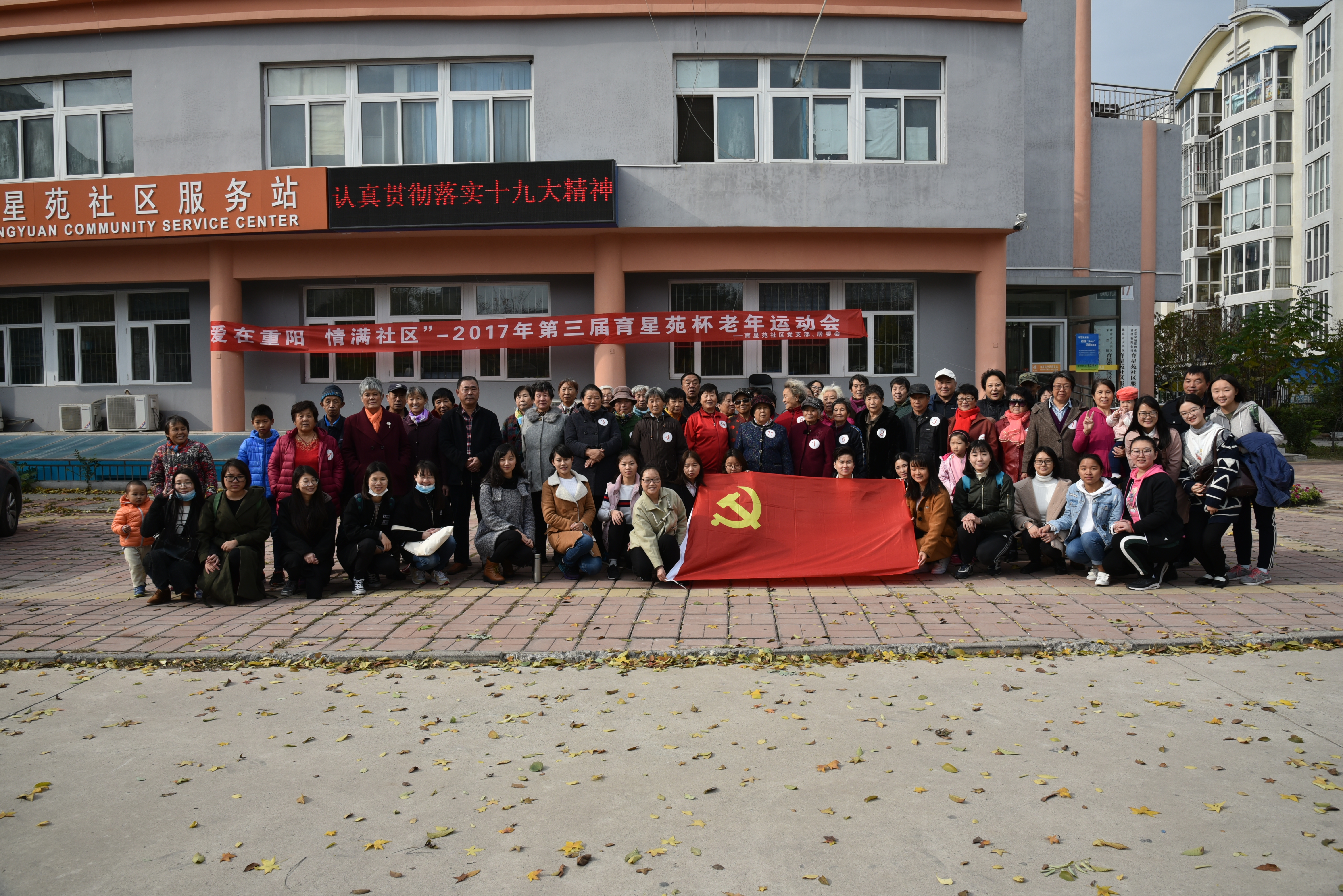 為落實黨的十九大精神,增強學生黨員的社會責任感和使命感,2017年10月28日,女性學系學生黨支部前往大興區采育鎮育星苑社區開展紅色“1+1”共建活動——“愛在重陽,情滿社區”老年運動會。
