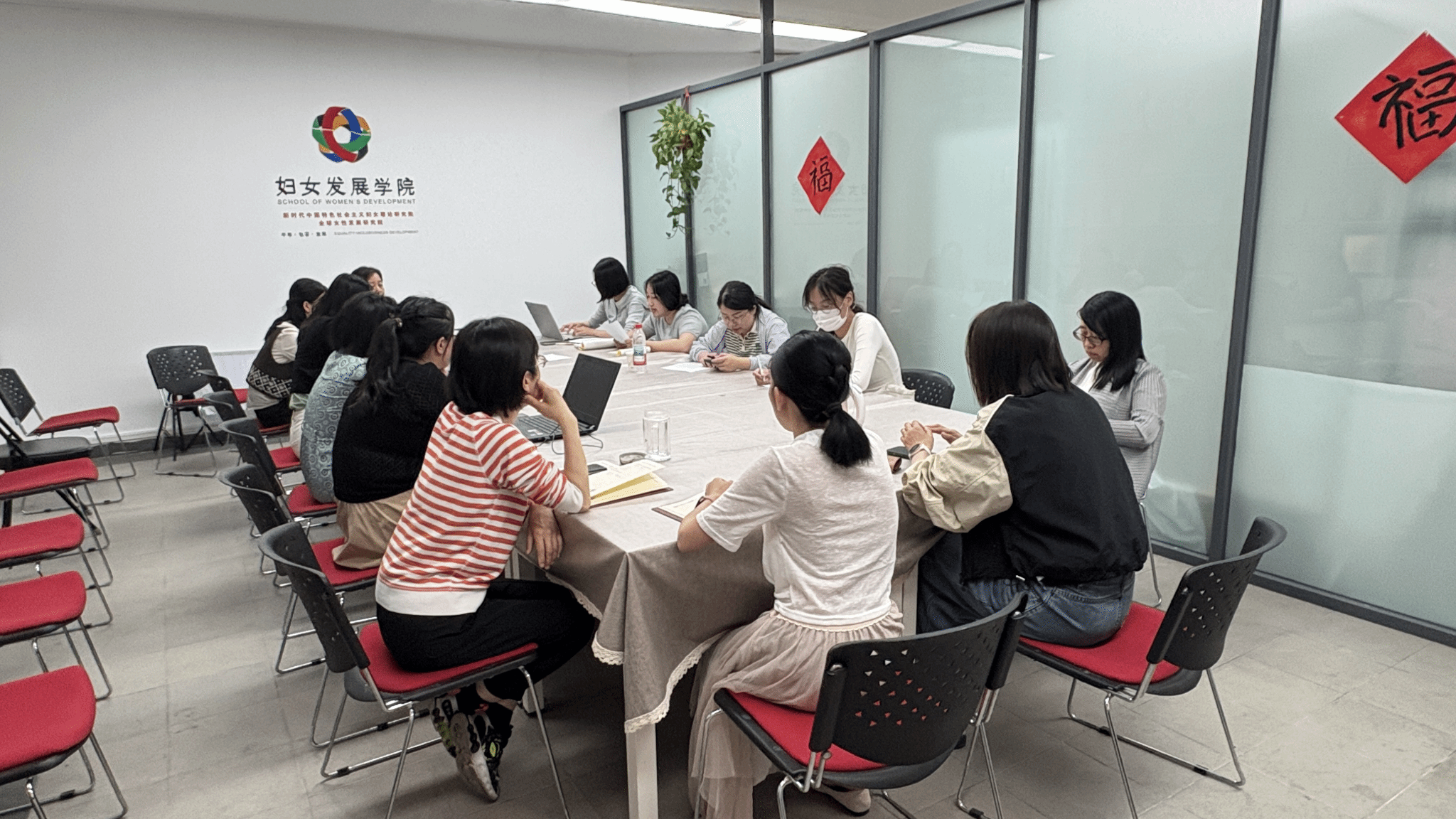 為加強黨建與業務間的融合,5月20日下午,支部與女學圓桌共同舉辦“共敘北京+30”的學習研討。本次活動邀請了1995北京世婦會的親歷者張健老師和吳華老師講述北京世婦會的背景和歷史細節。張健老師介紹了當時的社會背景和北京世婦會的歷史意義,北京世婦會作為改革開放后中國首次承辦的國際會議,對中國社會的發展具有重要影響,促進了中國婦女研究的蓬勃發展。吳華老師講述了世婦會籌辦的細節,回顧了會議籌備過程中的困難,如會場變更、參會人數暴增等問題。親歷者的講述使老師們感同身受,讓老師們仿佛回到了那個激動人心的時代,更加深刻地意識到北京95世婦會給中國社會及世界婦女帶來的影響和意義。