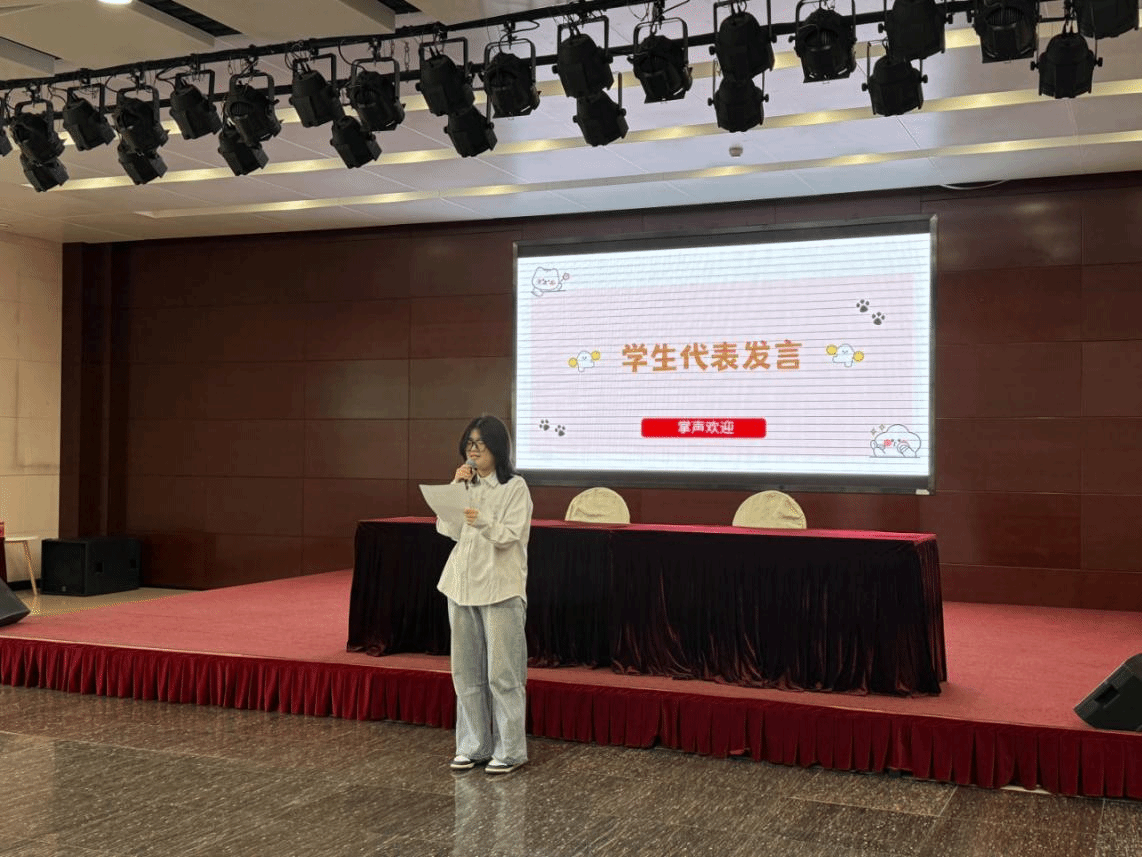 在“青春印記”學生代表發言環節,本科畢業生代表曹振華以《致我們滾燙的青春》為題,通過時光相冊串聯起四載求學路。“從拖著行李箱怯生生走進寢室,到如今胸有成竹地站在學術論壇;從在實訓室反復打磨調研方案,到深入社區開展性別平等實踐……”真摯的講述令現場師生動容。