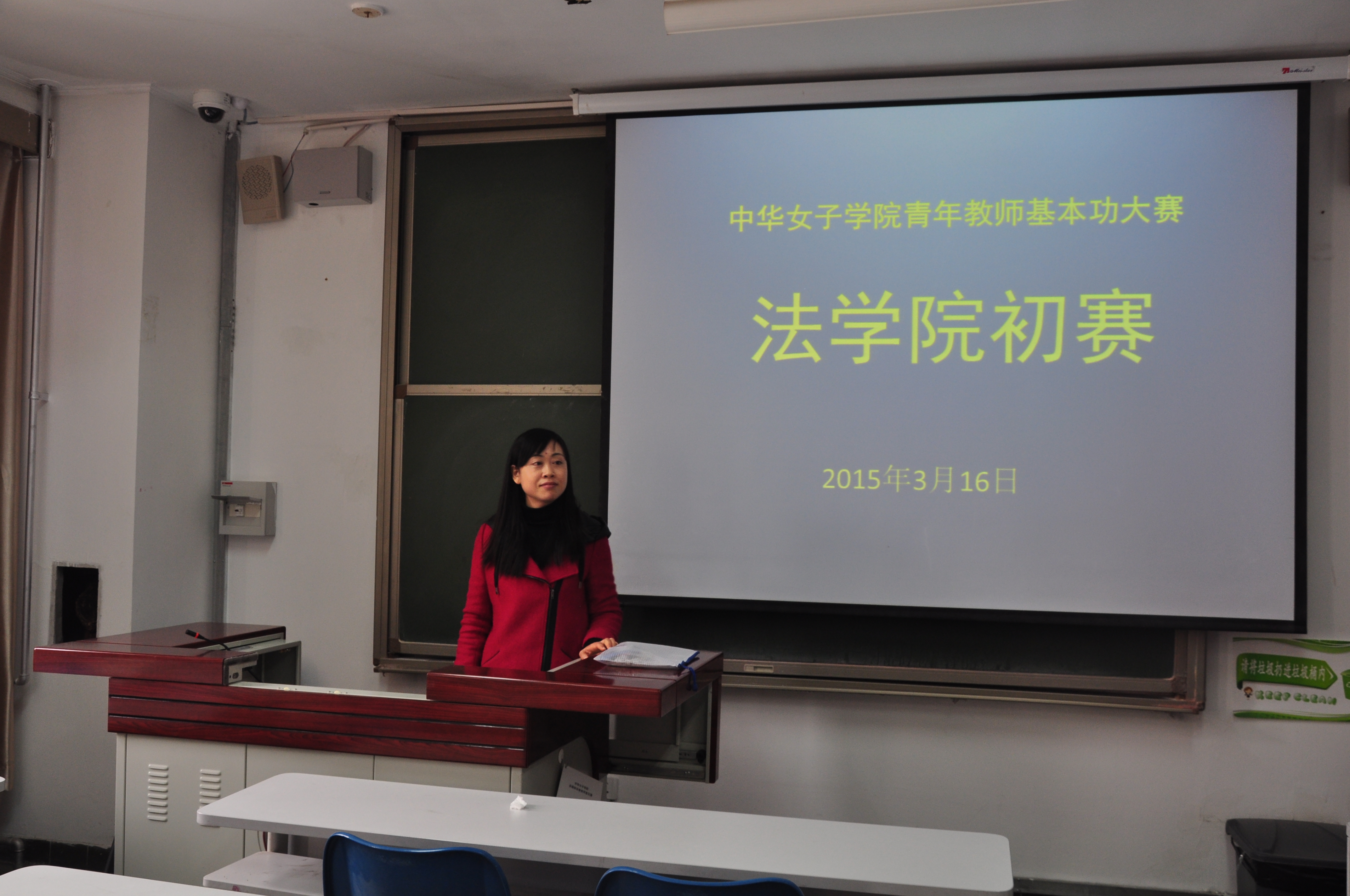 2015年3月16日中午,根據(jù)我院初賽工作計劃表,我院在主樓312舉辦第六屆青年教師教學(xué)基本功初賽。青年老師朱曉飛、湯軼群二位老師進行了教學(xué)演示,全系教師紛紛獻計獻策。