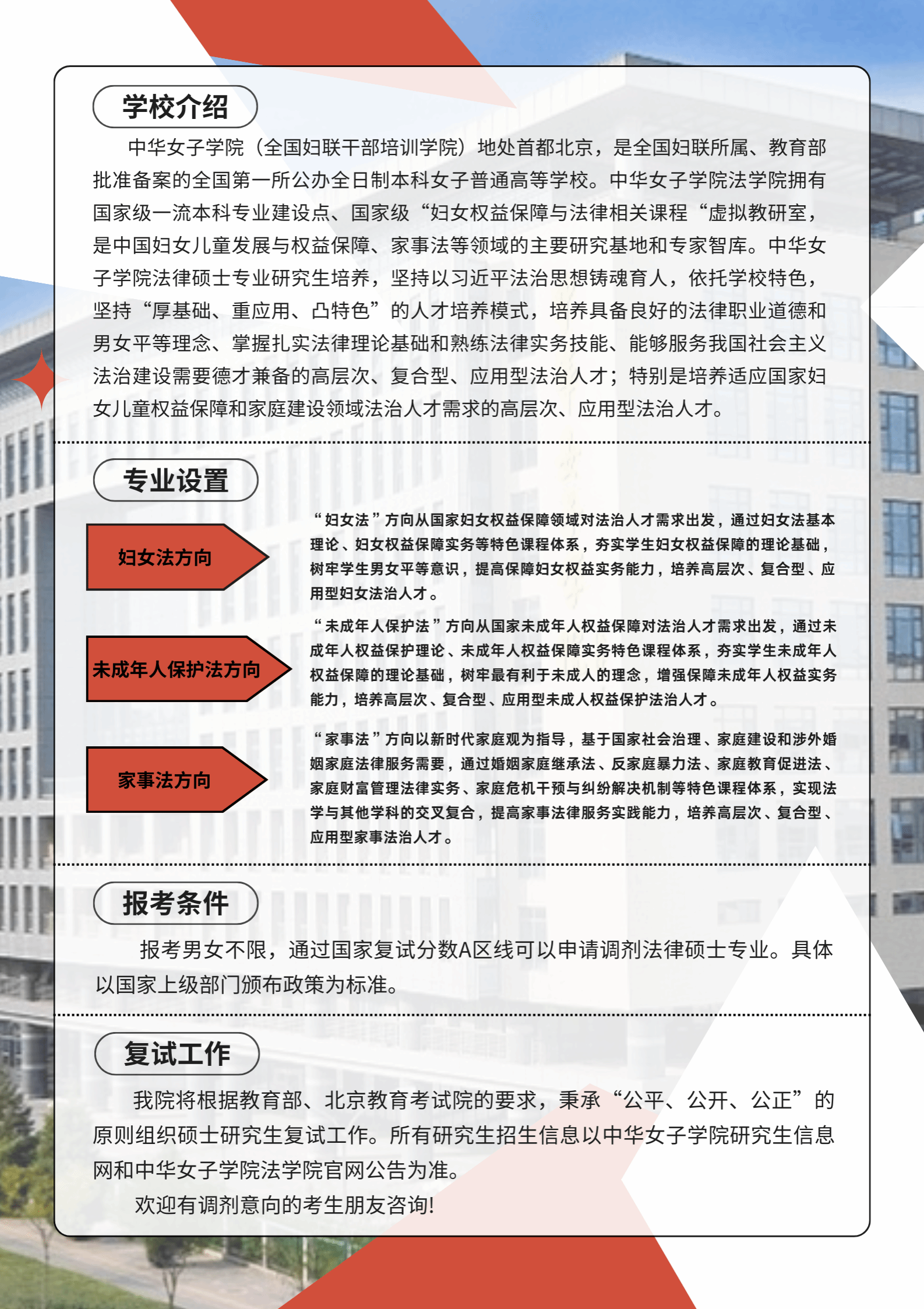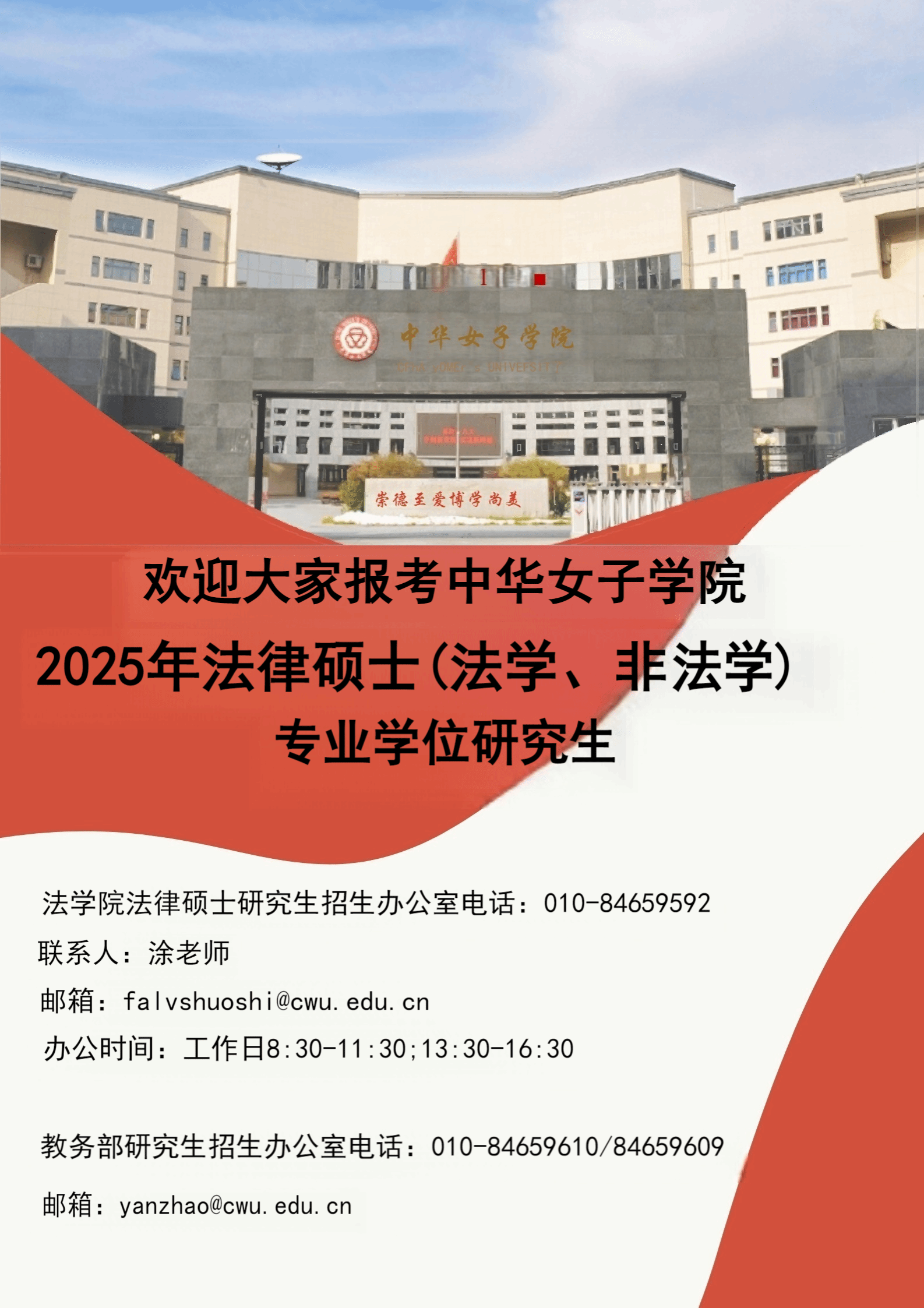 歡迎大家報考中華女子學院2025年法律碩士專業學位研究生!