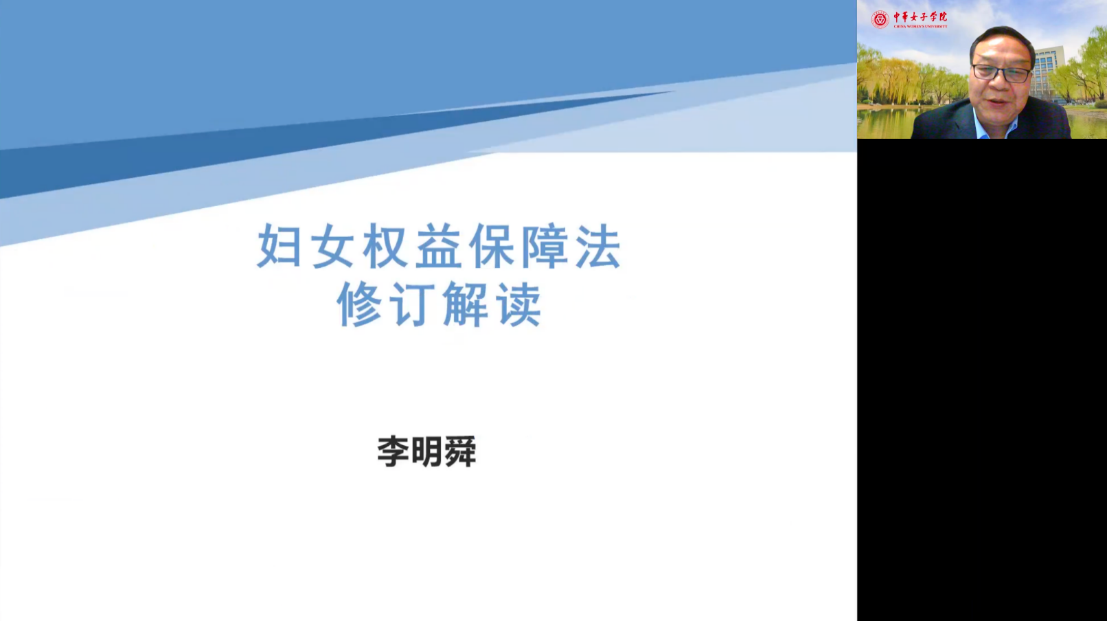 2022年11月3日,在《婦女權(quán)益保障法》全面“大修”剛剛塵埃落定的背景下,為了貫徹落實黨的二十大報告中提出的“堅持男女平等基本國策,保障婦女兒童合法權(quán)益”,深入領(lǐng)會《婦女權(quán)益保障法》修訂的重大意義,精準(zhǔn)理解各條文修訂的具體內(nèi)涵,中華女子學(xué)院法學(xué)院“婦女權(quán)益保障與法律相關(guān)課程虛擬”教研室主辦了以“《婦女權(quán)益保障法》修訂解讀”為主題的教研活動。活動由教研室負(fù)責(zé)人、中華女子學(xué)院黨委書記李明舜教授主講,由法學(xué)院院長黃晶主持,法學(xué)院全體師生、來自全國各地多所高校的教研室成員、中華女子學(xué)院全體中層領(lǐng)導(dǎo)以及社工學(xué)院、婦女發(fā)展學(xué)院全體教師聆聽了講座。