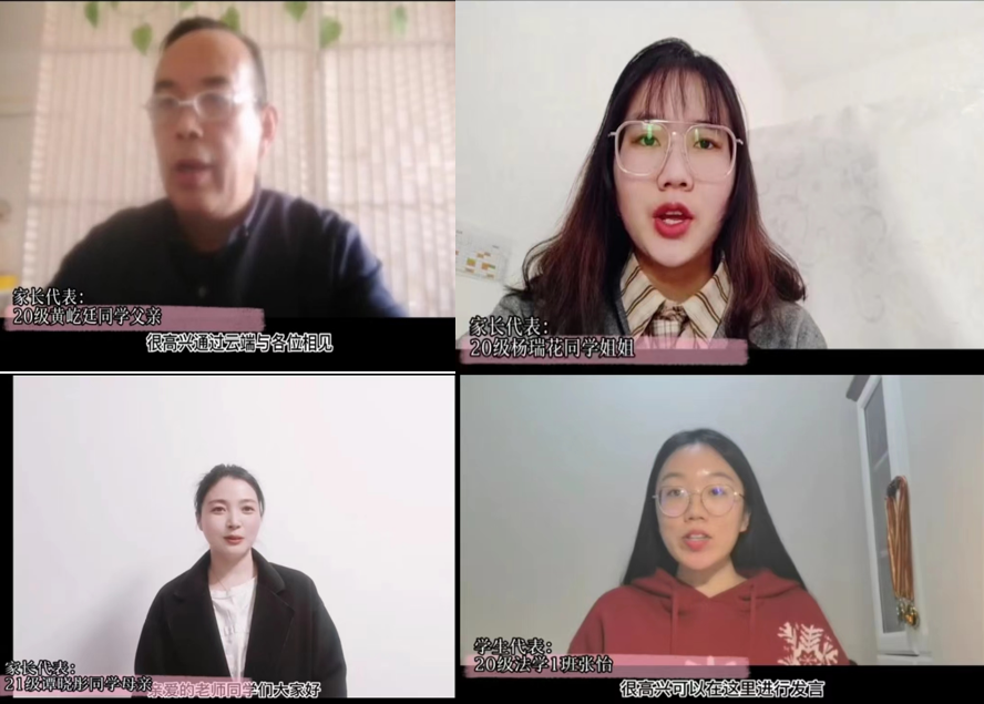 奏唱國歌之后,法學院全體師生共同觀看視頻。重溫2022,師生勠力同心、奮楫篤行、踔厲奮發,在共克時艱、同心抗疫的前提下,法學院開展了多姿多彩的課外活動,同學們在各項比賽中取得了優異的成績,為自己的大學生活添上濃墨重彩的一筆。寒假期間老師們與律所、檢察院簽訂合作協議,為今后同學們的實習工作提供更多選擇;同學們有人學習技能完善自我,有人游歷山水開拓視野。三年疫情終過去,眾志成城再啟程,三位家長代表及學生代表為全體師生送上開學寄語,祝愿法學院師生在新學期攜手前行,點燃夢想,共赴星辰大海。