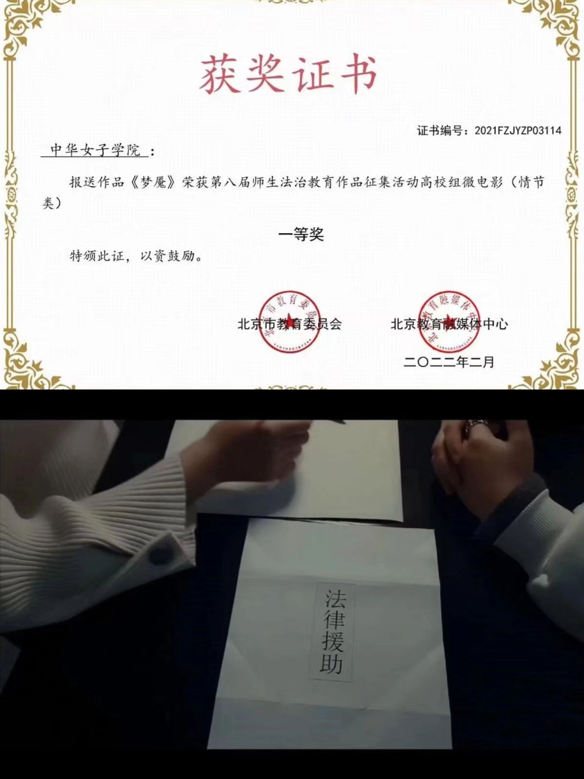 法學院學生日前接到北京市教委通知,她們2021年向北京市第八屆師生法治教育作品征集活動推送的作品《夢魘》、《虐——童心泯滅》榮獲高校組微電影(情節類)一等獎,《向侵害說不》榮獲高校組微電影(情節類)二等獎。