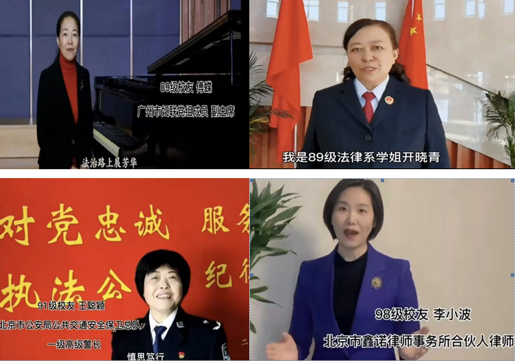 升旗儀式結束后,法學院師生共同觀看由學生會制作的開學視頻,一起回顧2021年,展望2022年。2021年法學院結合黨史學習教育舉辦了豐富多彩的活動,在師生的共同努力下,法學專業成功獲批國家級一流本科專業建設點和法律碩士學位授權點,成果頗豐。寒假中師生們同樣過的豐富多彩。法學院六名冬奧志愿者給老師和同學們錄制了視頻祝福,祝大家開學快樂,平安健康,號召大家發揚冬奧精神,以飽滿的熱情投入新學期。四名優秀校友——89級傅蝶、89級開曉青、91級王聰穎、98級李小波應邀為學妹、學弟送上新春祝福和開學寄語,期望法學院同學們在新學期立志氣,養才氣,聚靜氣,長才氣,不忘初心,一起向未來!