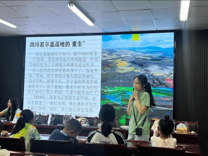 接下來正式上課,第一天的主題是“綠水青山就是金山銀山”,主講隊員劉嘉怡、王洪艷通過對涼山州地理位置、地形地勢及生態環境的生動介紹,引入習近平生態文明思想,告訴小朋友們“綠水青山就是金山銀山”。呼吁大家愛護自然、保護環境,熱愛自己的家鄉。
