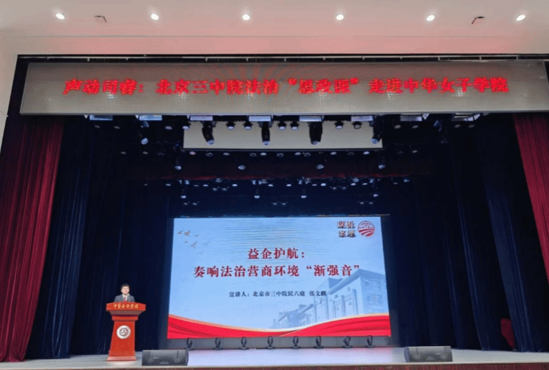 法治是中國式現代化的重要保障,文化自信是中國式現代化的重要支撐。在我校建校75周年之際,為了貫徹落實黨的二十屆三中全會精神,積極踐行習近平法治思想和習近平文化思想,了解新時代“深”“活”兼具的法治故事,鼓勵同學們做新時代的好青年,2024年10月22日下午,法學院和校團委共同邀請北京市第三中級人民法院“聲動司睿”案例文化宣講團來到中華女子學院,在我校禮堂成功舉辦了“聲動司睿”法治思政課。校青馬工程班成員、法學院師生共500余人參加此次活動,法學院2024級二學位魏子杰同學擔任宣講活動主持人。