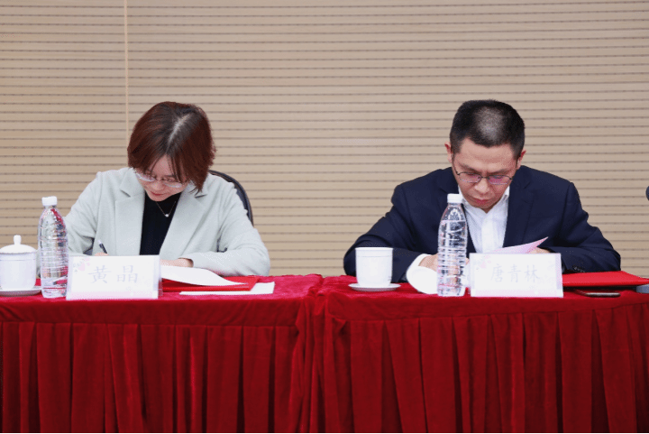 黃晶院長與唐青林主任代表雙方簽署《共建教學實踐基地協議》合作協議。