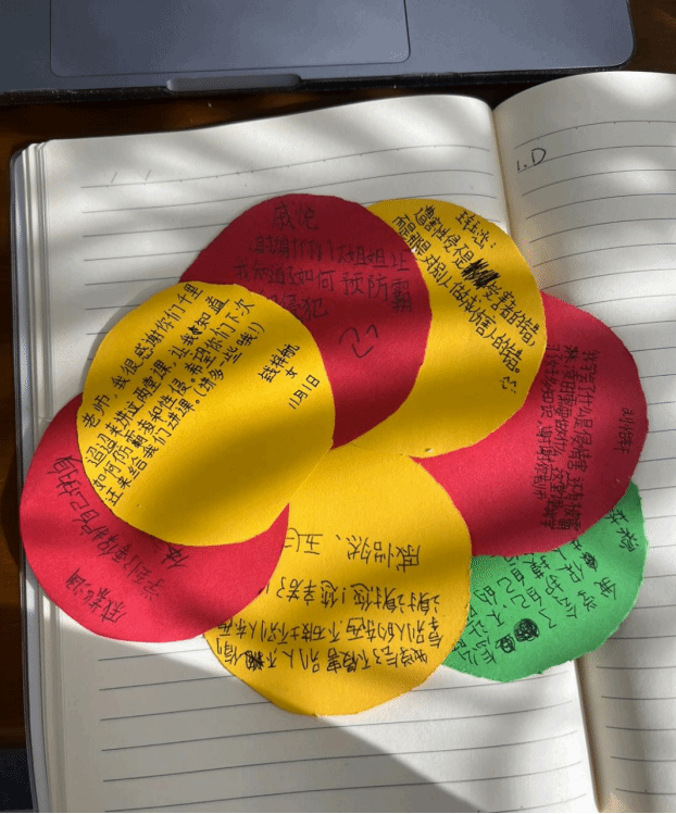 課堂最后,同學們用稚嫩的筆跡在紙片上寫下感想。從他們的字里行間,能感受到對宣講活動的肯定,此次宣講活動確實在他們心中種下了法律意識和安全意識的種子。同學們還表達了對這次普法宣講活動的真摯感激和對新知識的渴望。