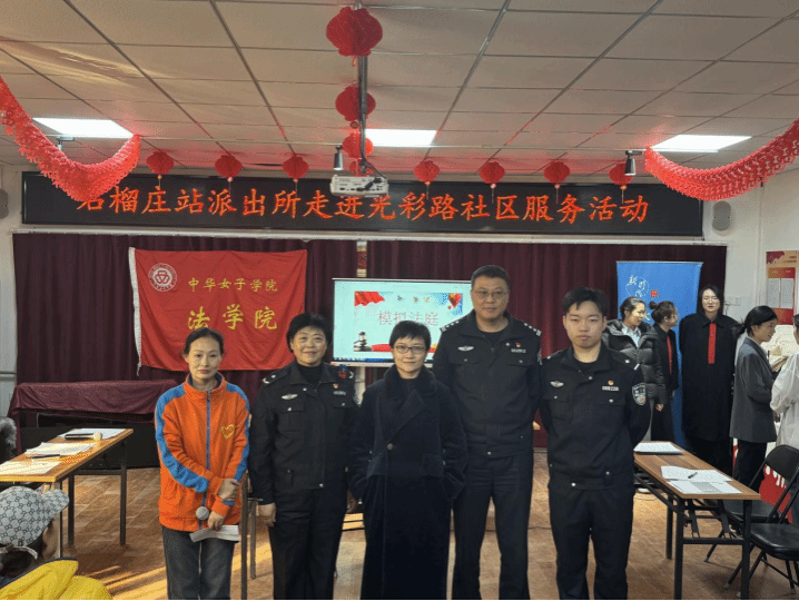 豐臺(tái)區(qū)光彩路社區(qū)為法學(xué)院校外志愿服務(wù)基地“王聰穎黨員服務(wù)崗”所在地。“最美基層公安民警”王聰穎校友、北京市公安局公共交通安全保衛(wèi)法制處副處長(zhǎng)楊毅以及石榴莊站派出所民警參與聯(lián)合普法。