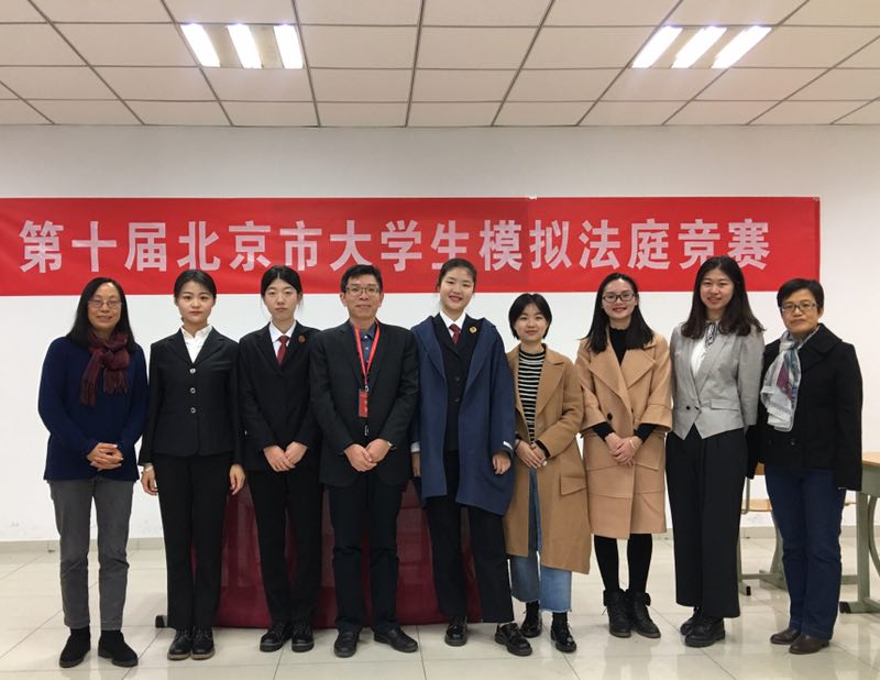 2018年11月24日下午,由北京市教育委員會主辦的第十屆北京市大學生模擬法庭競賽第三輪決賽暨頒獎典禮在中國政法大學昌平校區舉行。我校法學院2016級學生包思泉、陳嘉怡、陳曉娟、紀璇、石丹妮、孫倩六名學生組成的代表隊在指導老師劉春玲、領隊老師劉永廷的帶領下,在第一輪比賽中對陣北京工業大學,第二輪對陣首都醫科大學,以二連勝的佳績,挺進決賽,取得歷史性突破,最終獲得競賽二等獎(二等獎里排名第一),法律文書一等獎;同時,陳曉娟同學因為表現優異獲得最佳個人獎第二名。